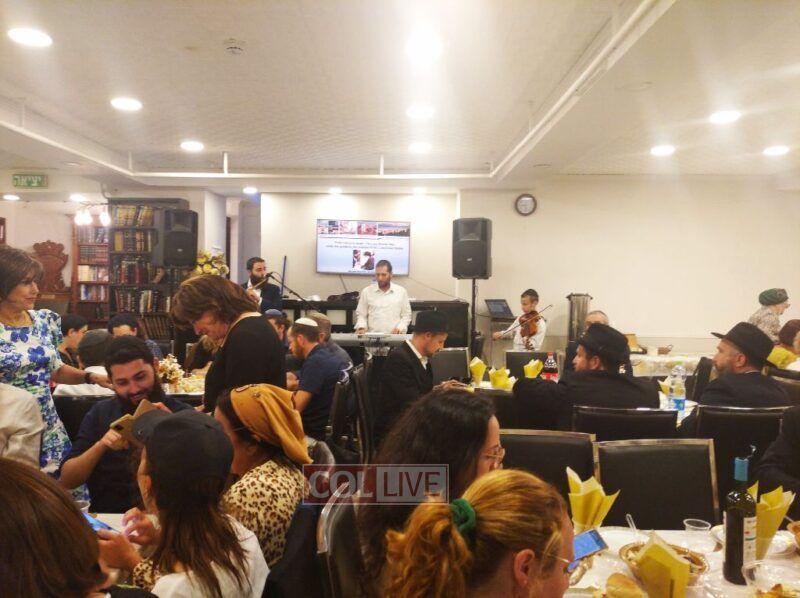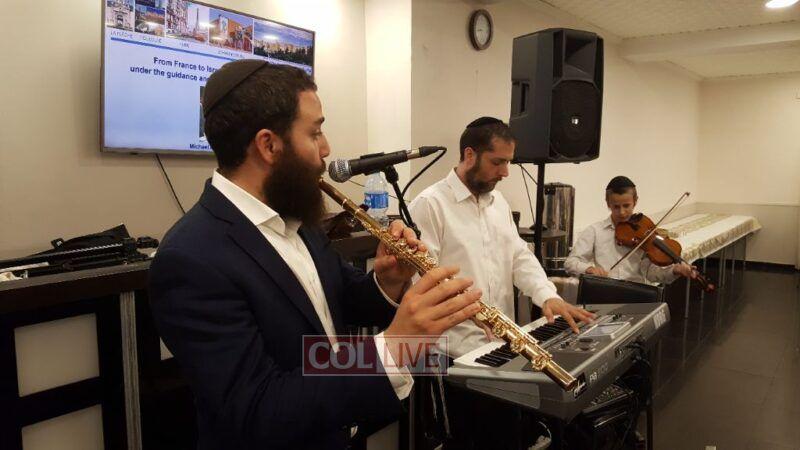 Talented musicians graced the evening, including flutist Shmuel Allouche, violinists R’ Yitzchak Hurwitz and Yekusiel Hendel, and pianist and singer, Pinny Shachar. The music was joyful and energetic and led to spontaneous dancing.