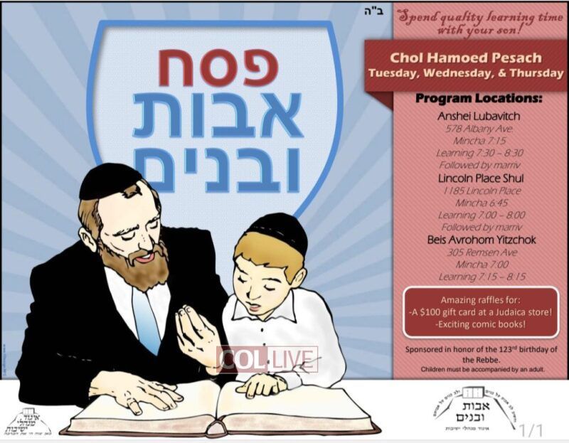 This year Avos Ubanim has arranged a special Pesach Chol Hamoed Program for Tuesday, Wednesday and Thursday . the first 3 days of Chol Hamoed.