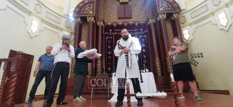 How amazing it was that the shliach of war torn Mariupol Rabbi Mendel Cohen, who is also a mohel, was brave enough to take up this unique mitzva despite the dangers and distance. Then Rabbi Moskovitz had to arrange the logistics and get him on a flight from Israel to Moldova and over 20 hours in a van crossing the border and driving through the whole Ukraine to Kharkov-a mere 40km from the Russian border. News spread fast that a special occasion and ceremony would be taking place in the synagogue on Thursday morning.