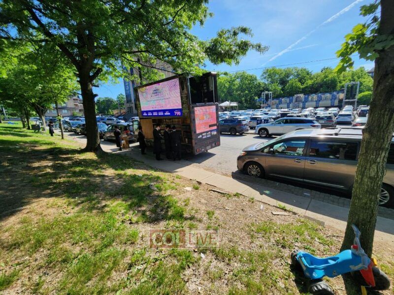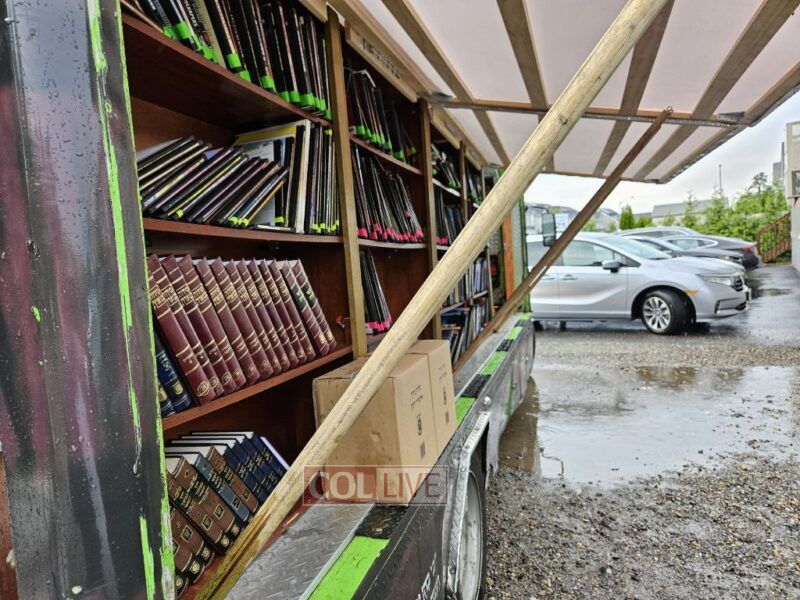 In some places, like Lakewood, heavy rain fell in the days leading up to Lag BaOmer. However, Or Hachasidus was prepared for this and installed special canopies on their trucks to ensure that nothing would stop a Jew from purchasing Hasidic books.
