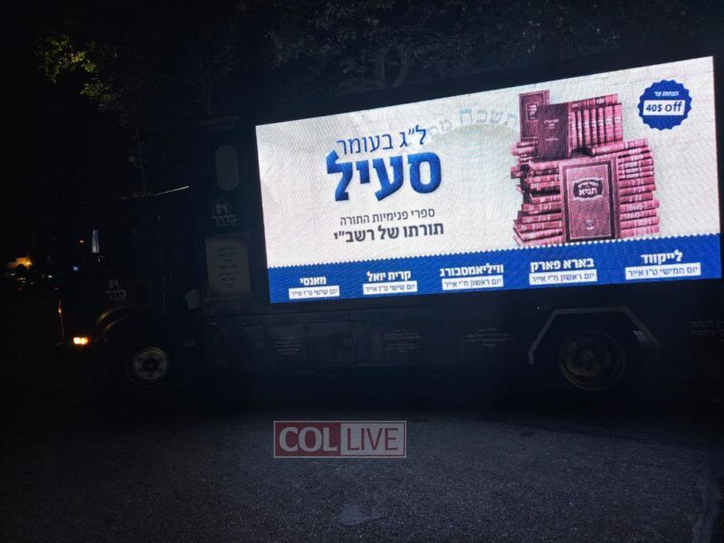 One of the prominent locations where seforim were sold was the Bobover Rebbe’s gravesite in New Jersey, which attracts thousands of visitors on Lag BaOmer. Rabbi Levi Azimov, shliach to South Brunswick New Jersey, helped arrange the visit and took care of many of the logistics. In addition to Babov, Hasidic books were sold in dozens of other locations, such as Borough Park, Kiryas Joel, Lakewood, and Williamsburg.