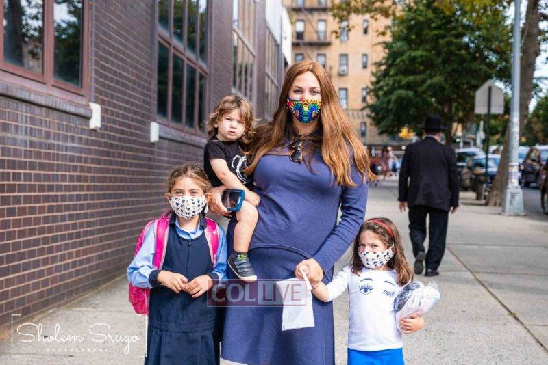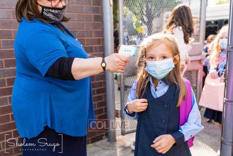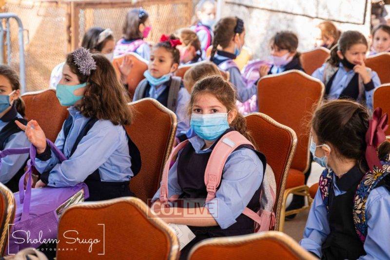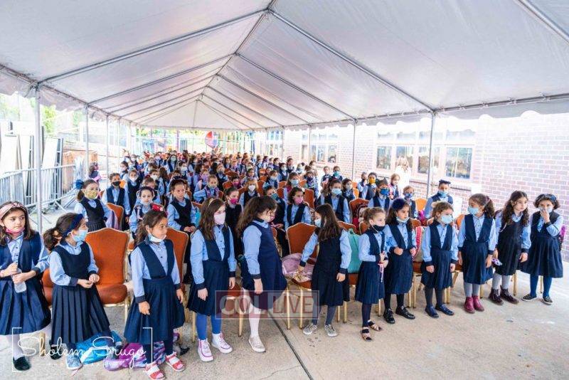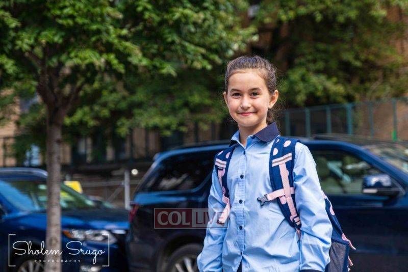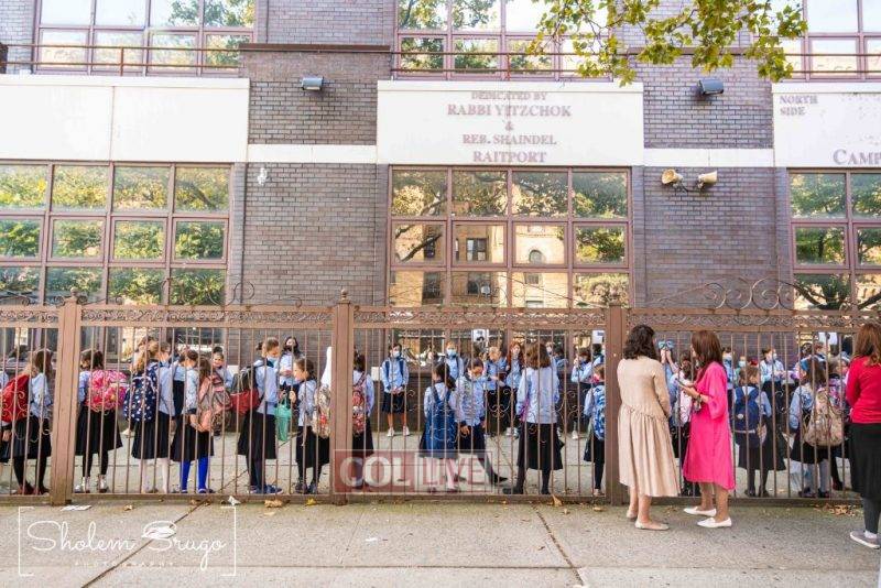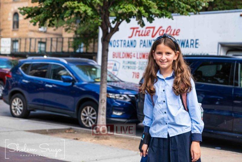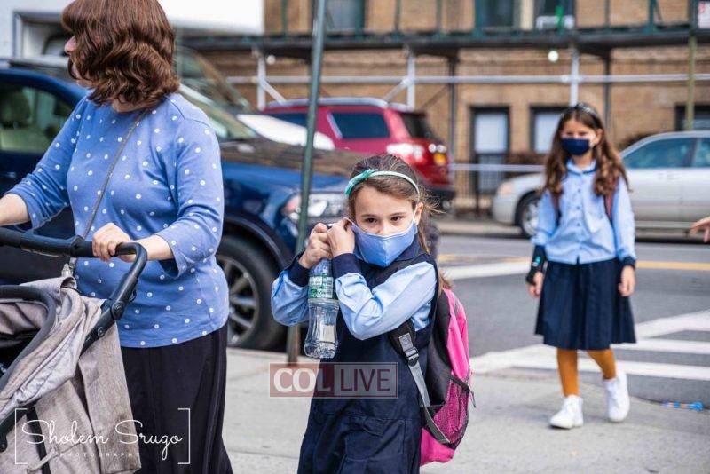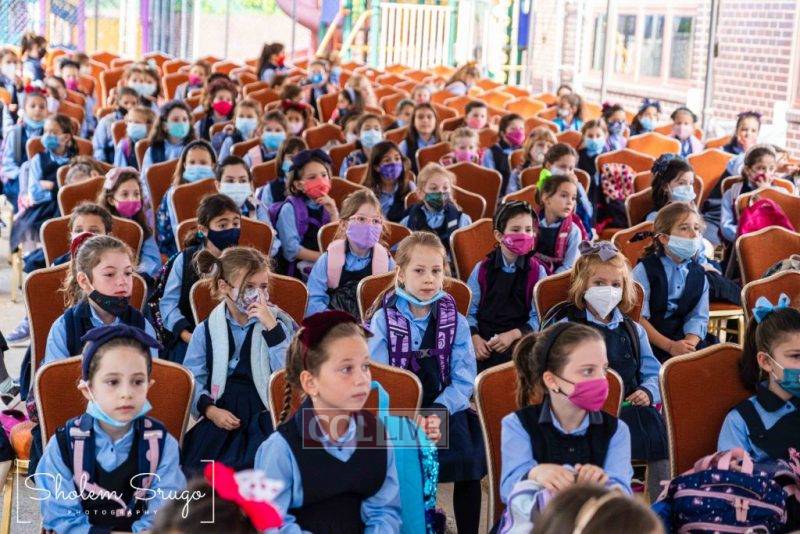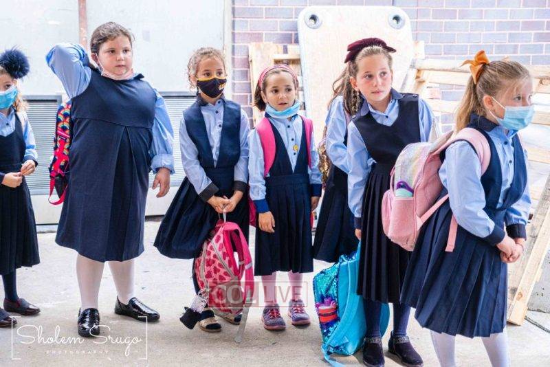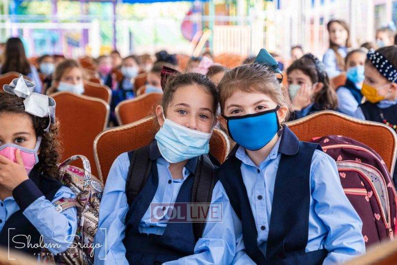 Wearing uniforms, bows and masks, students were happy to resume in-person learning with the start of the new school year at Bais Rivkah of Crown Heights on Tuesday. Photos