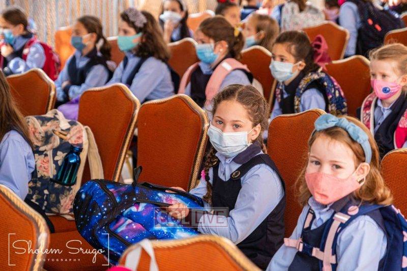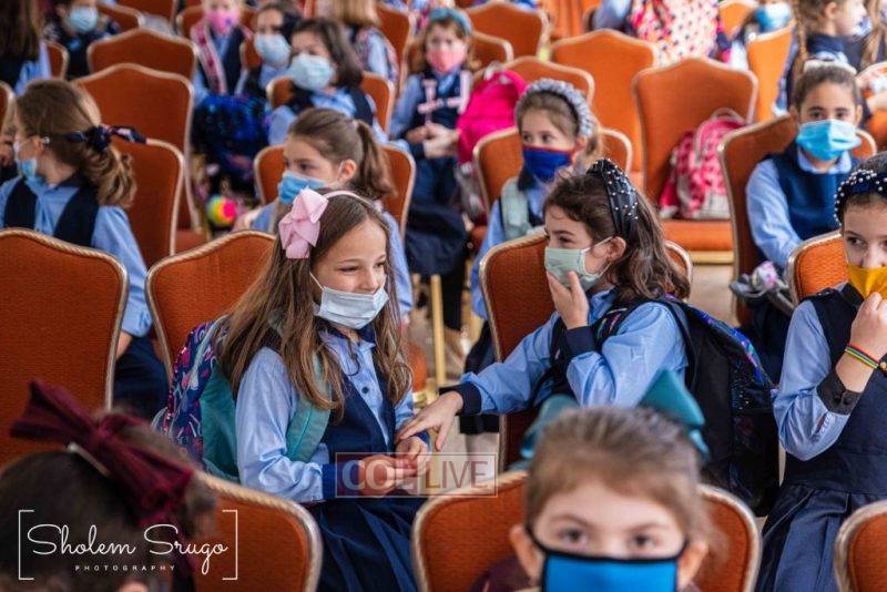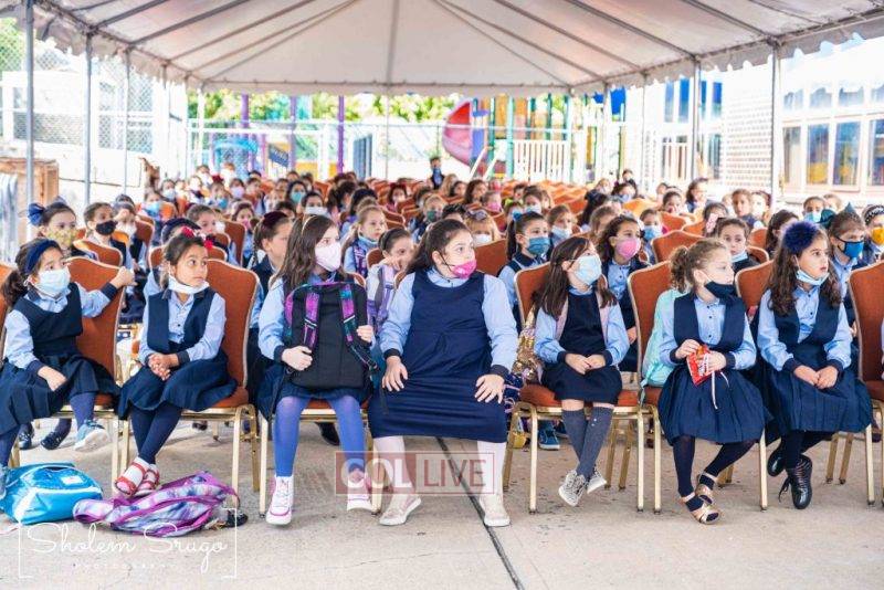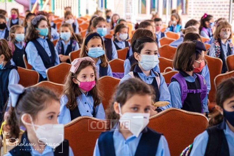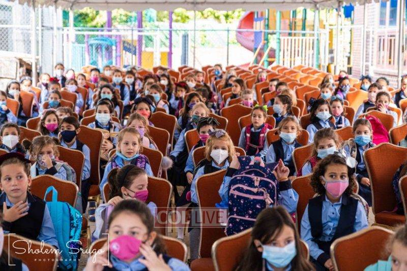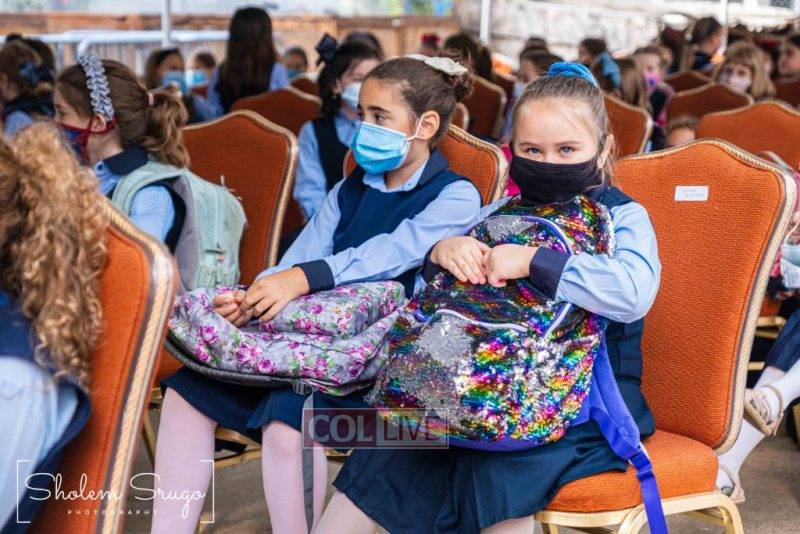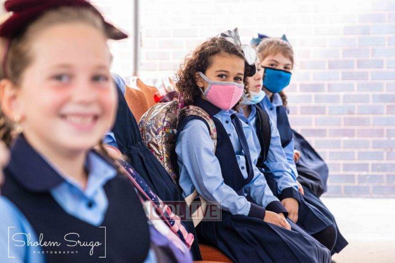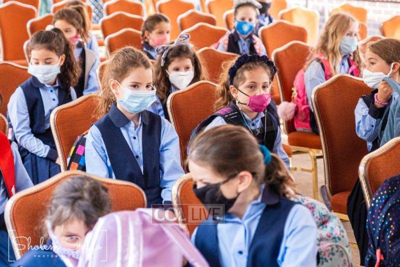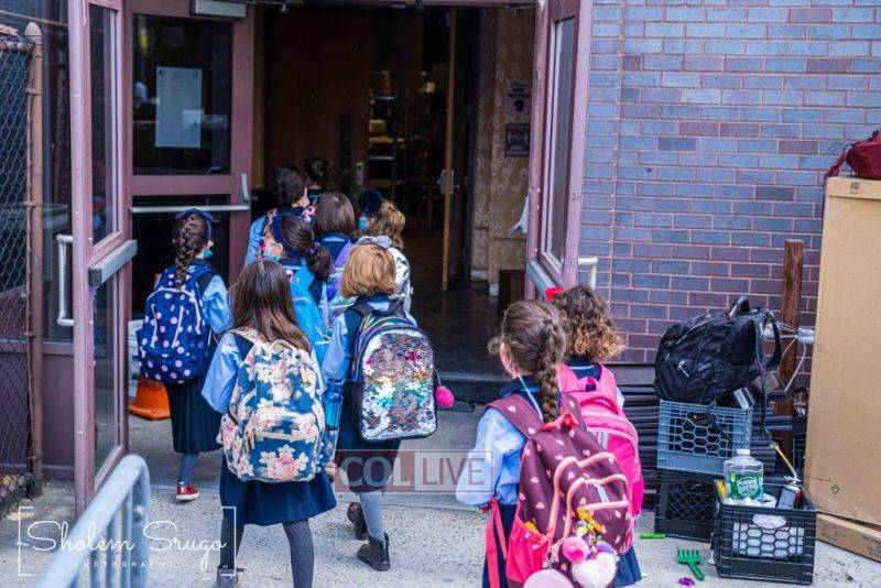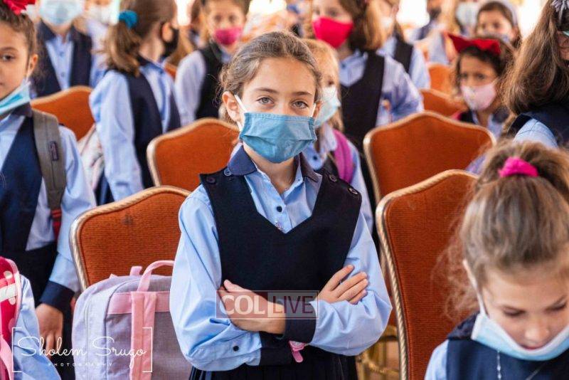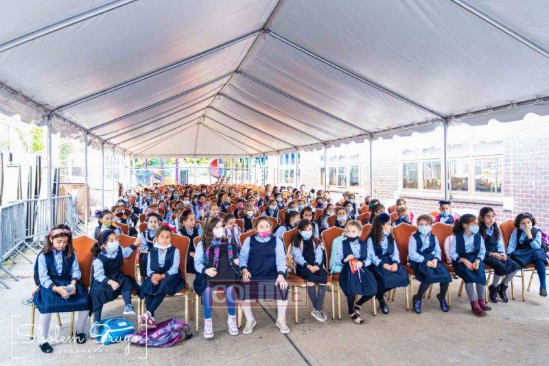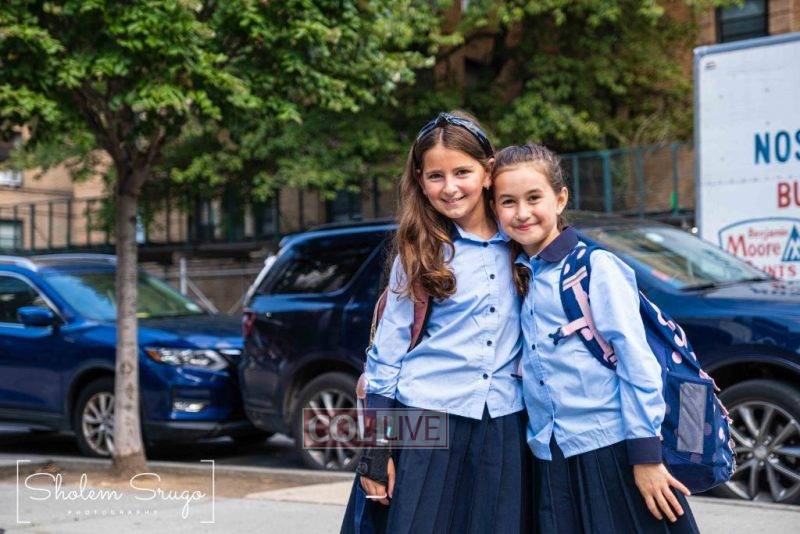 Wearing uniforms, bows and masks, students were happy to resume in-person learning with the start of the new school year at Bais Rivkah of Crown Heights on Tuesday. Photos