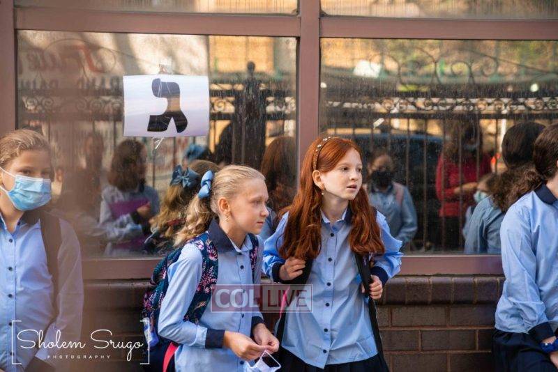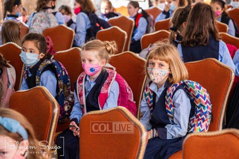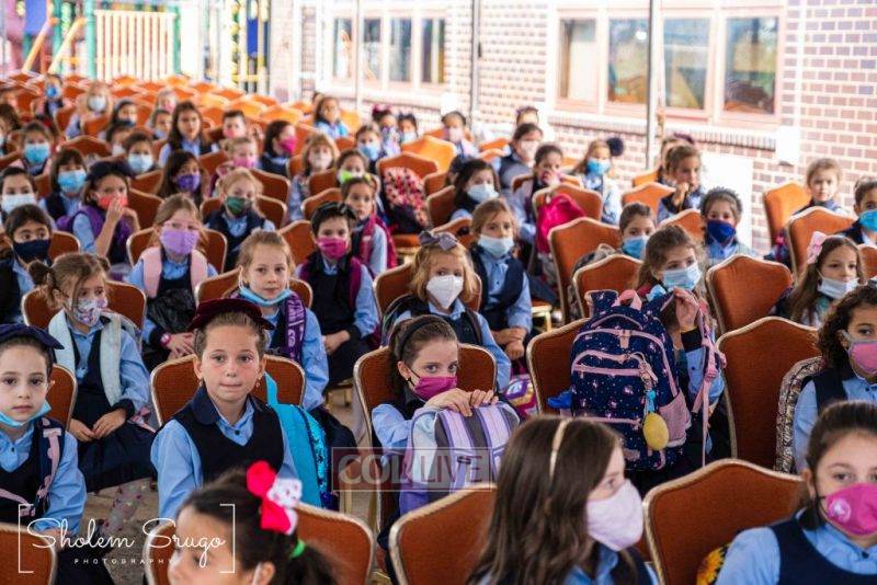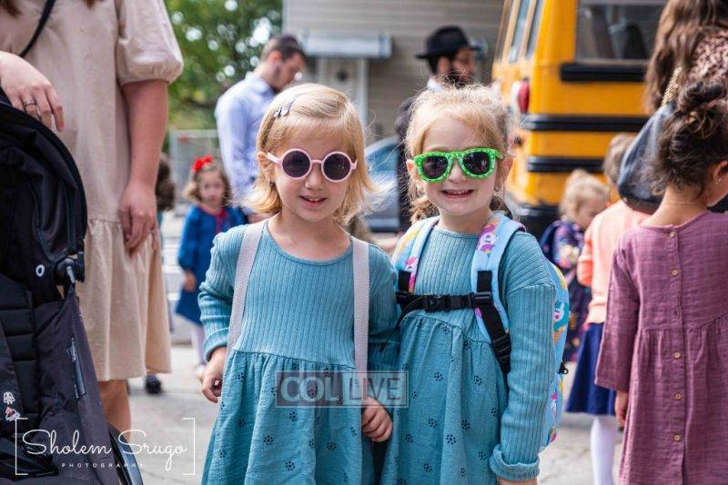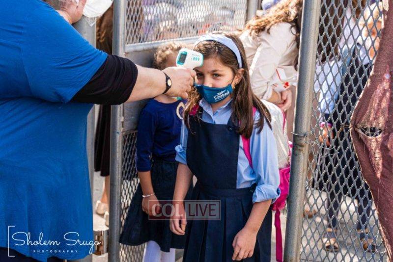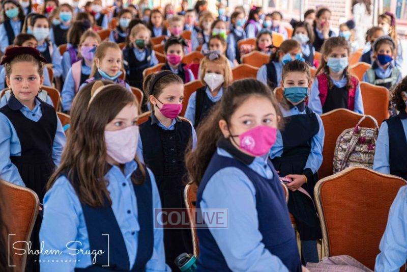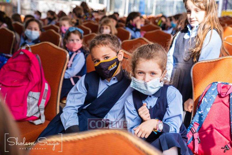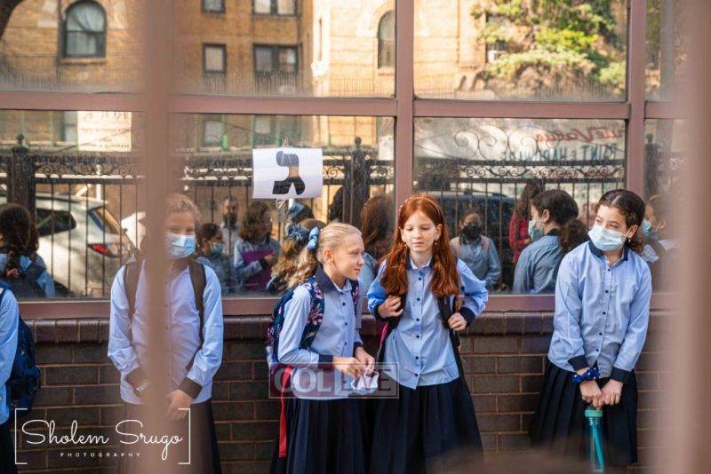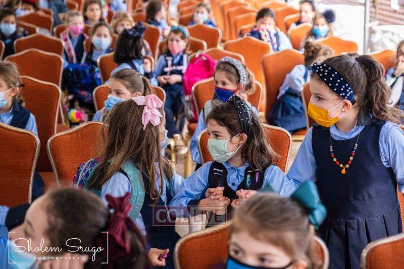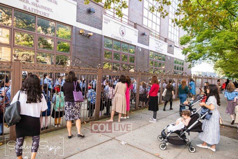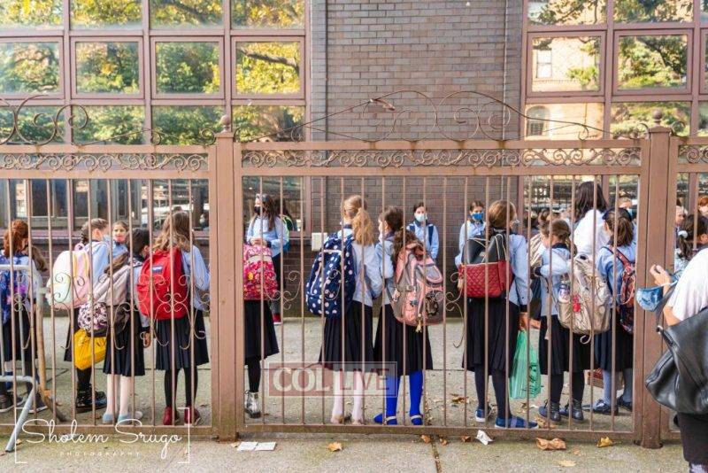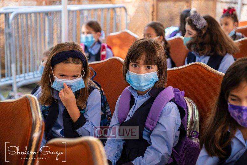 Wearing uniforms, bows and masks, students were happy to resume in-person learning with the start of the new school year at Bais Rivkah of Crown Heights on Tuesday. Photos