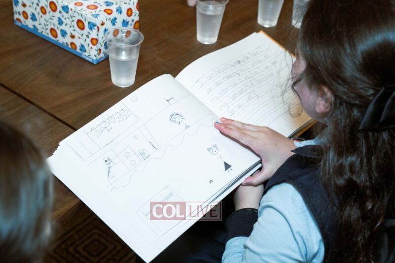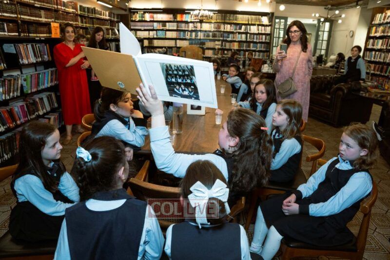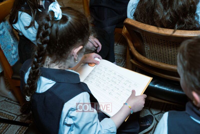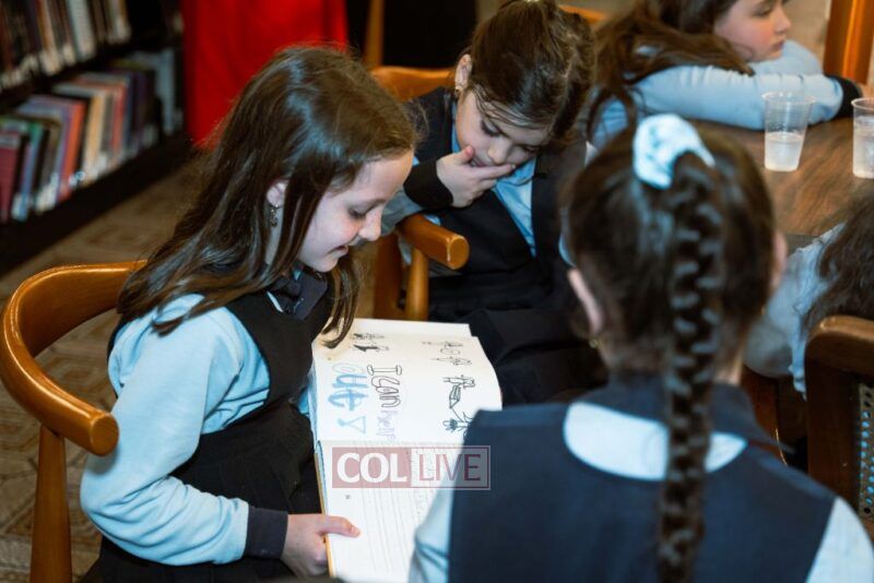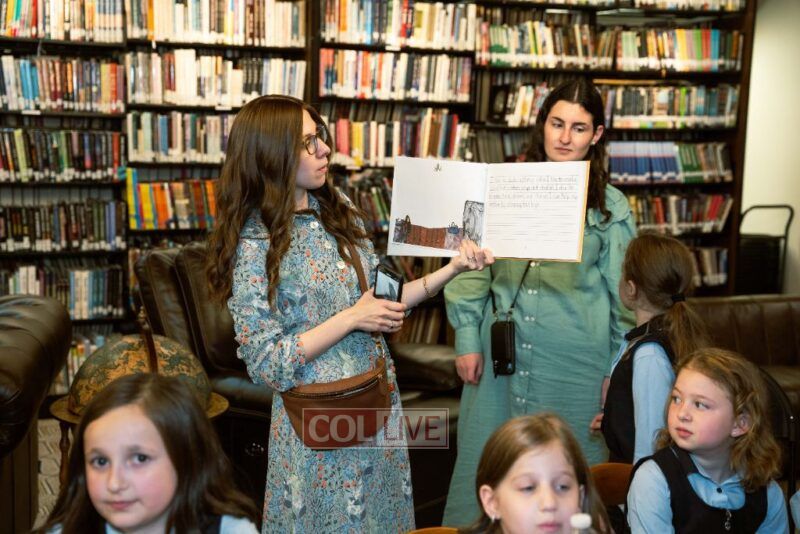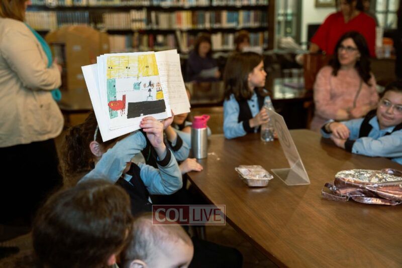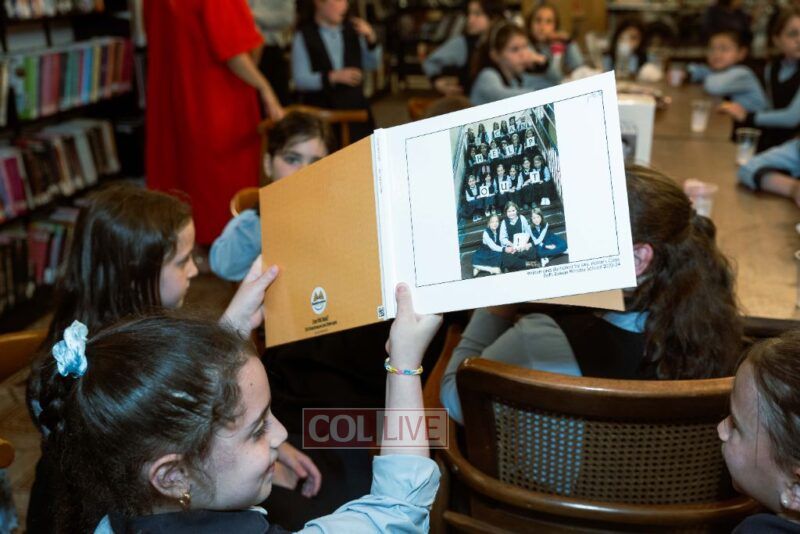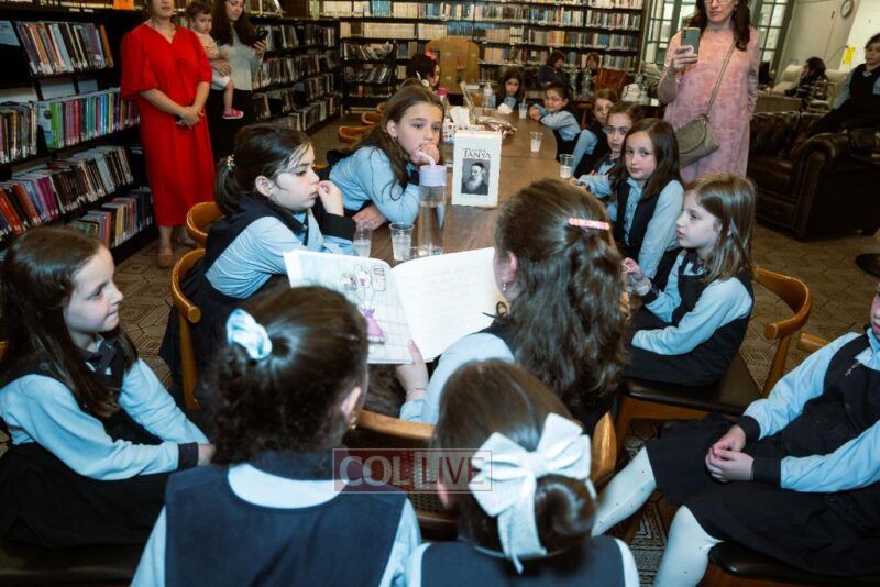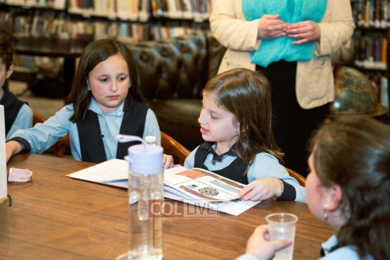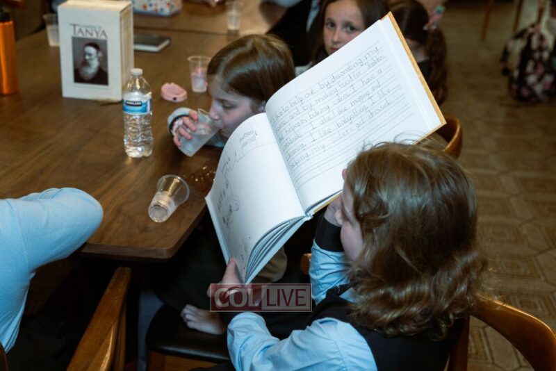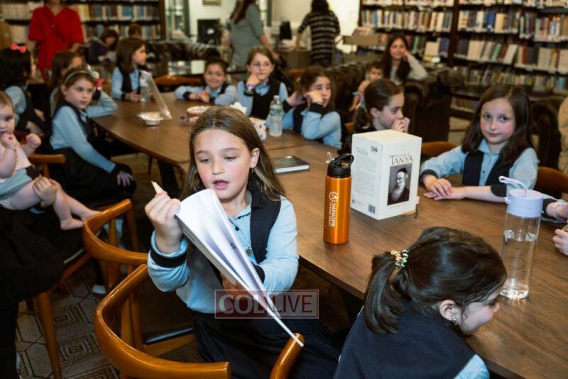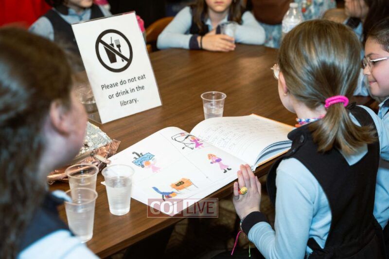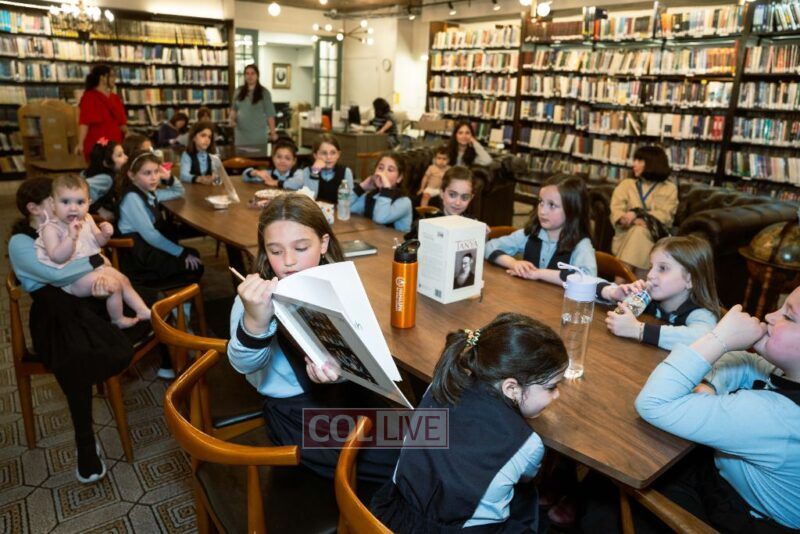 Mrs. Sara Halon‘s 2nd Grade class from Bais Rivkah in Crown Heights donated a copy of a book that they published to the Levi Yitzchok Library in Crown Heights.