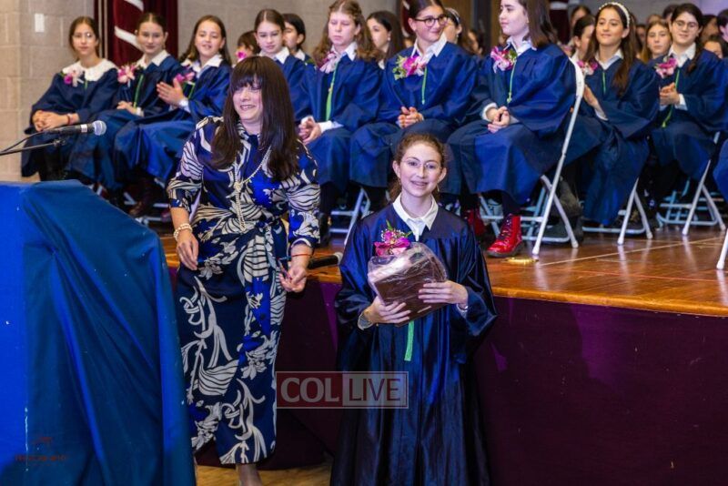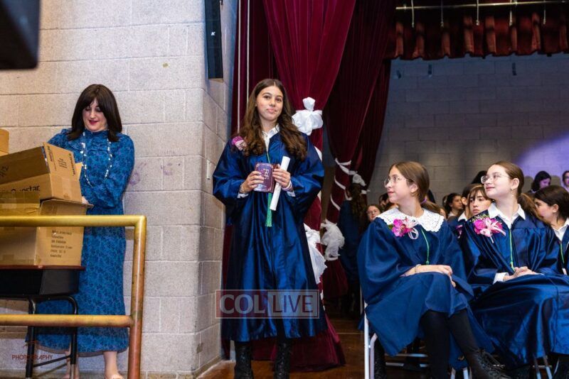 The eighth grade class of Bais Rivkah in Crown Heights marked their graduation ceremony Sunday with proud family and friends in attendance.