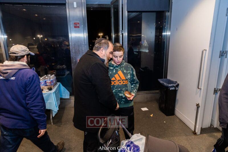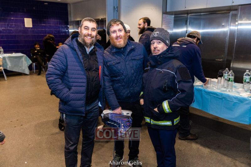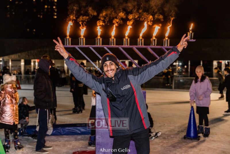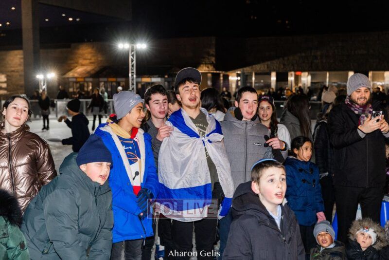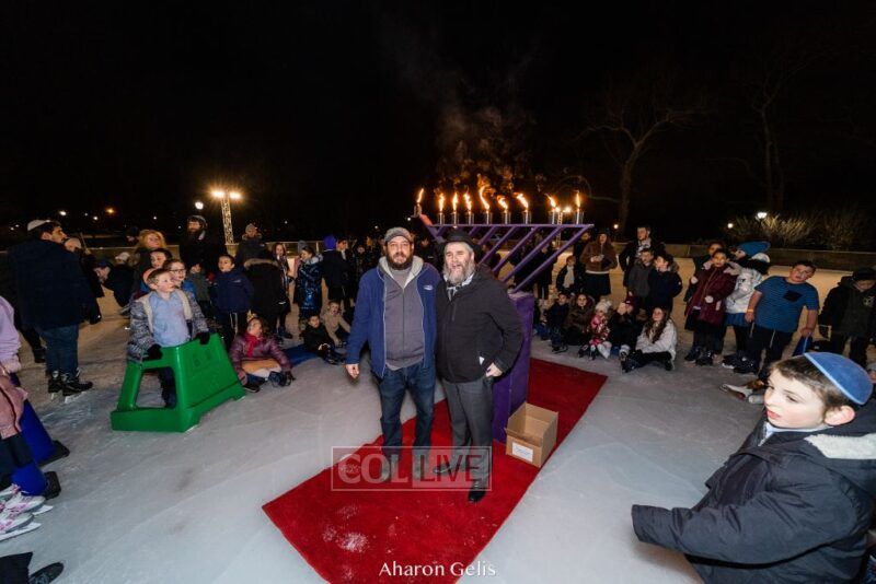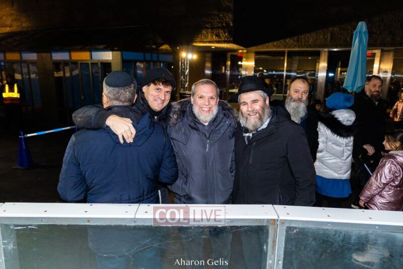 The highlight of the event was the lighting of a large Menorah, lit by Mike Schulman, the Manager of the Le Frak ice skating rink, who lit the Menorah in the merit of the Jews of Israel.