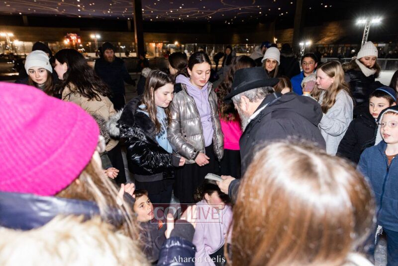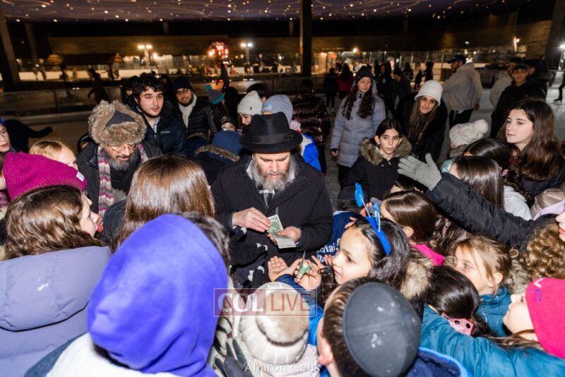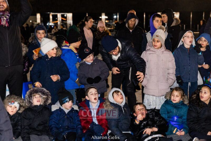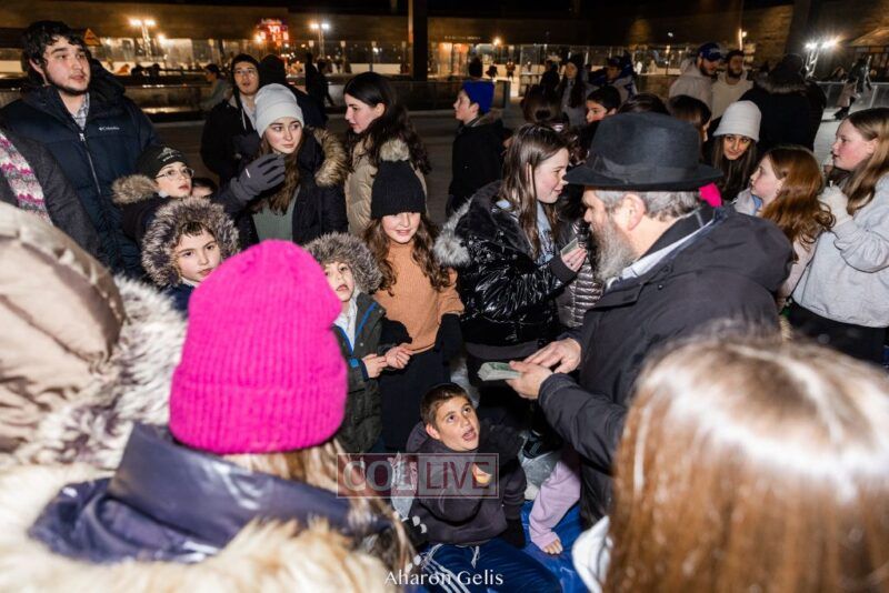 The children gathered to recite the 12 pesukim and Chanukah gelt was distributed to the over 300 children in attendance by Bais Shmuel President Rabbi Moshe Pinson.