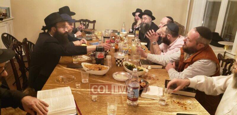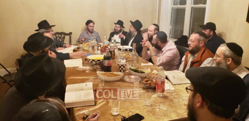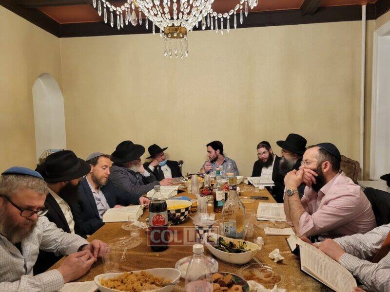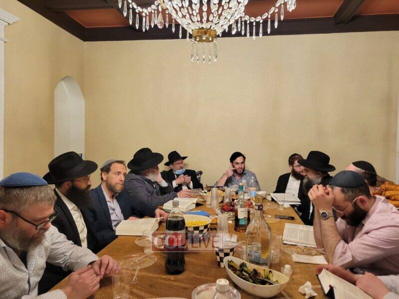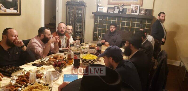 The farbrengen was hosted at the home of Yishai Grossman.