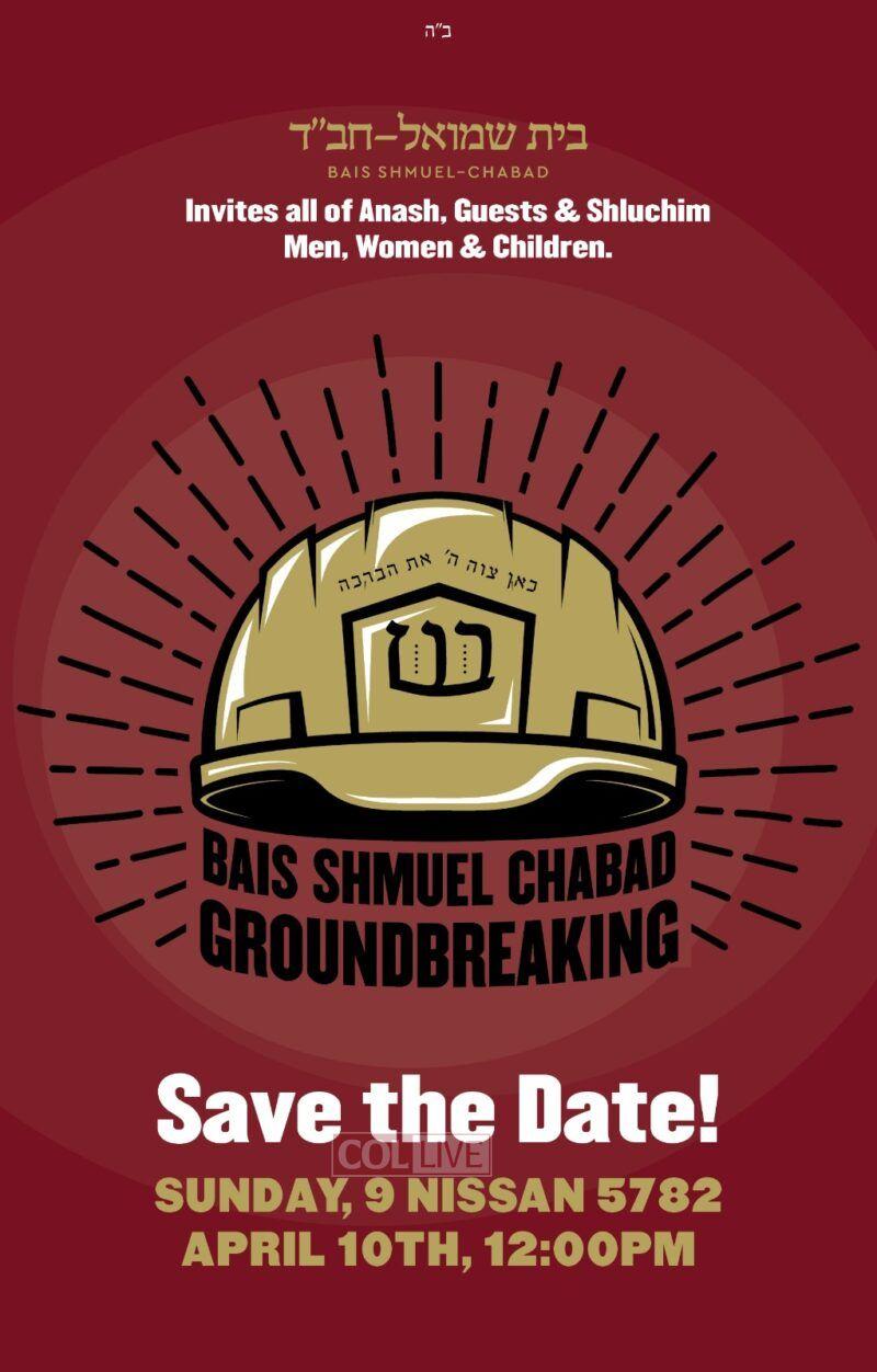 Bais Shmuel-Chabad, the flagship Shul in Crown Heights, will hold a groundbreaking event at their new property on Sunday, April 10.