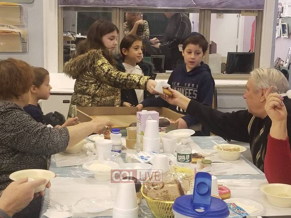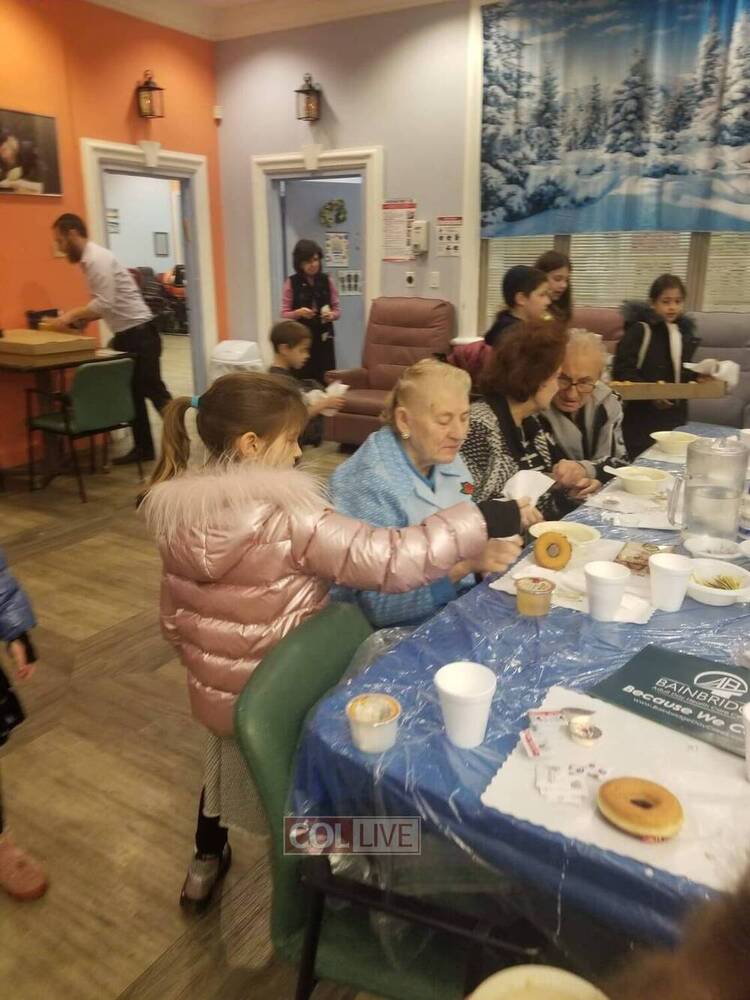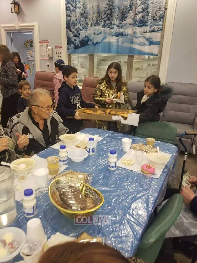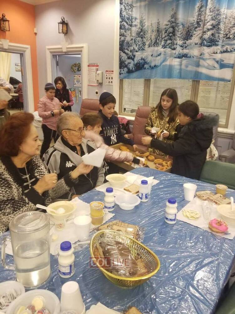 Fathers joined their children for mornings of family Mivtzoim at a local Senior Center, where the kids entertained with holiday songs, dancing and Chanukah treats and donuts.