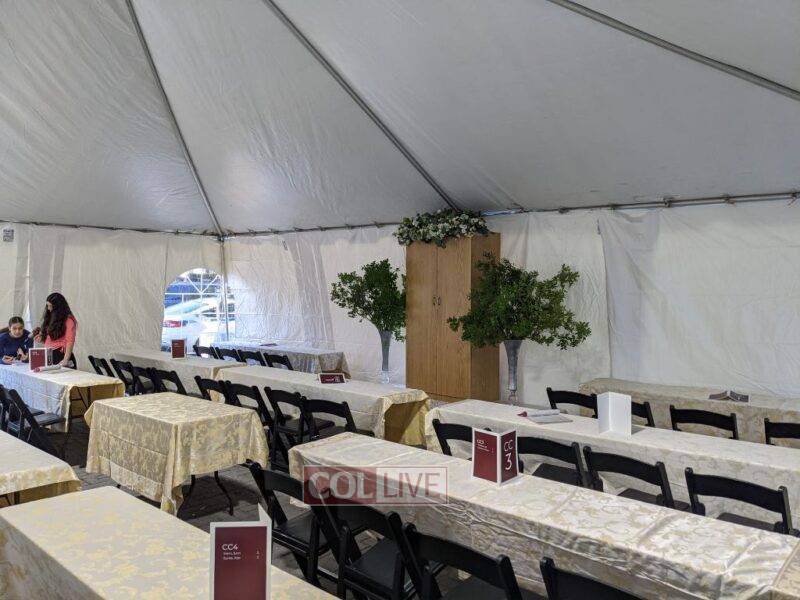The tent will accommodate the large overflow crowd which will daven at the Shul on Rosh Hashana.