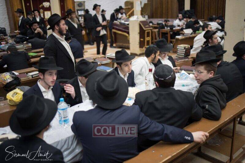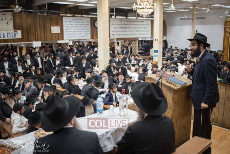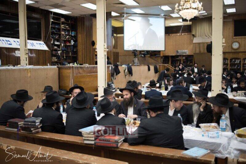 Chassidim and bochurim gathered for a Farbrengen Tuesday evening in the main Shul at 770 to mark Beis Iyar, the birthday of the Rebbe Maharash.