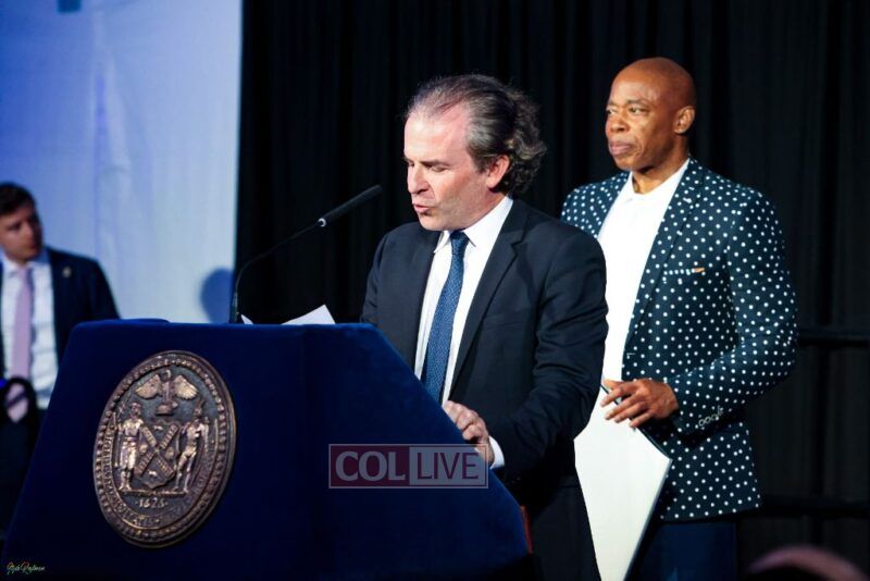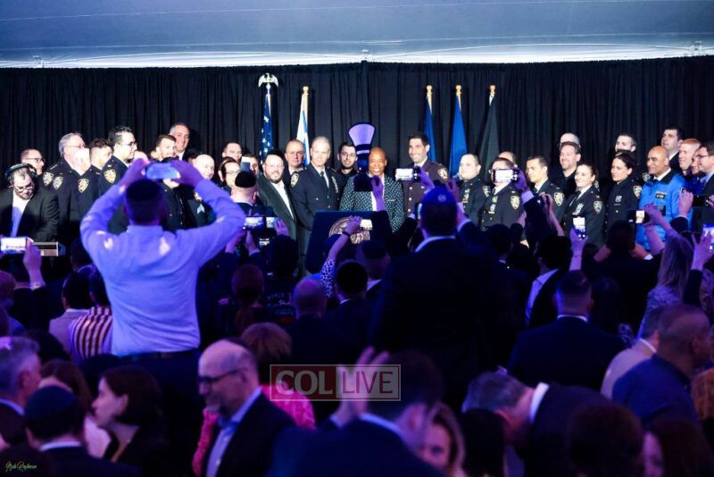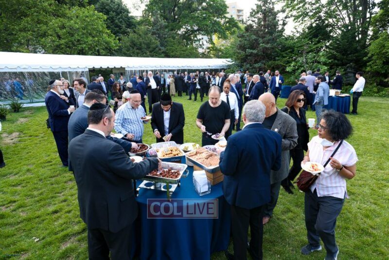 Adams mingled with the crowd that included the new acting consul general of Israel, Israel Nitzan, Knesset Member Yitzhak Pindrus, members of the New York City Council, and representatives of the Jewish community of Crown Heights, Boro Park, Williamsburg, Flatbush, Queens and others.