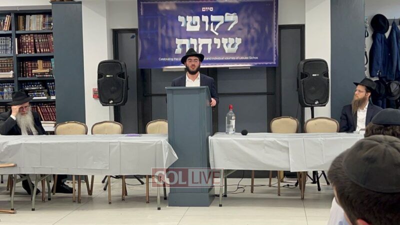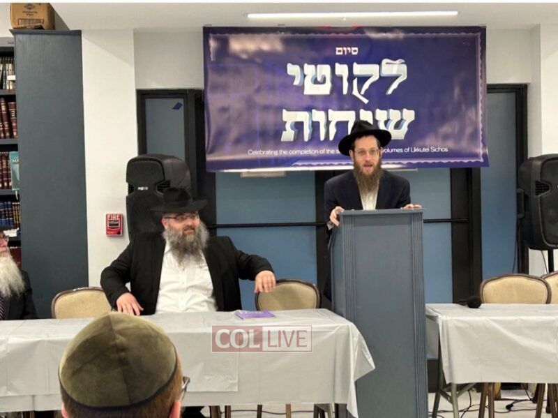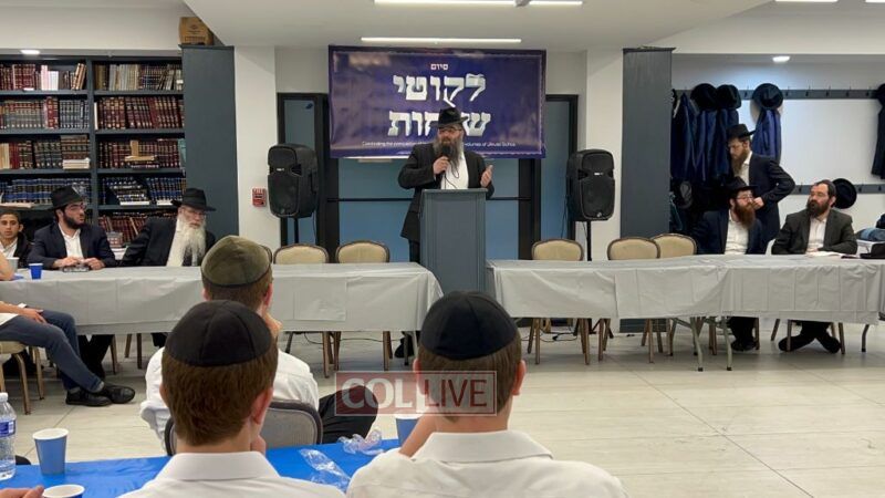 The event also celebrated the completion of the first 3 volumes of Likkutei Sichos by 6 bochurim: Mendel Eizicovics, Mendel Amitai, Dovid Wolfson, Mordechai Katz, Levi Ciment, and Menachem Scheinberger, who have begun learning Likkutei sichos and have already completed the first 3 volumes this year.