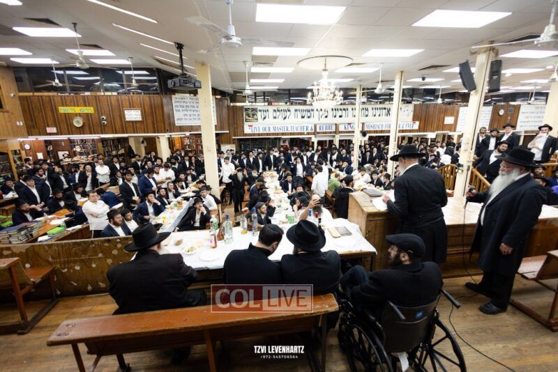 In celebration of this great miracle, friends, family, and fellow Chassidim gathered on Motzei Shabbos for a farbrengen and Seudas Hodaa in the main shul of 770.