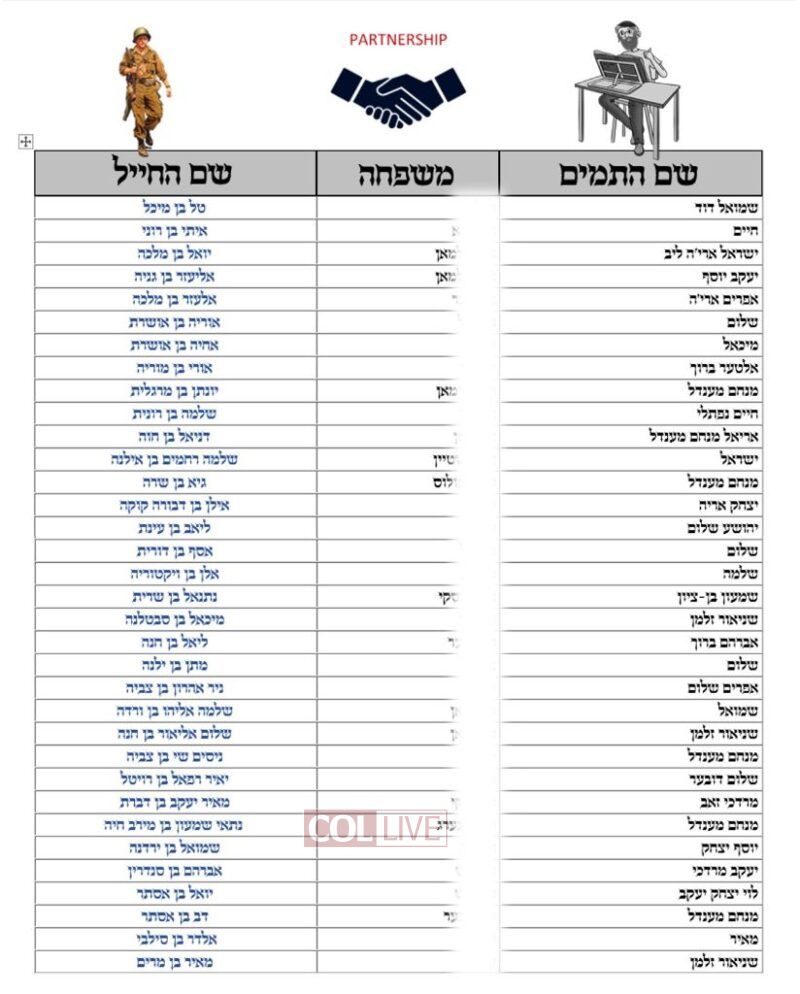To personalize this joint effort, The bochurim at Tomchei Temimim – Chovevei Torah were paired up with IDF soldiers on the front lines. Each Bochur received the name and mother’s name of a soldier to have in mind in his Tefillos and learning, forming a personal partnership and sense of responsibility in this crucial time for Klal Yisroel and Eretz Yisroel. This was arranged using the services of prayforidf.co.il.