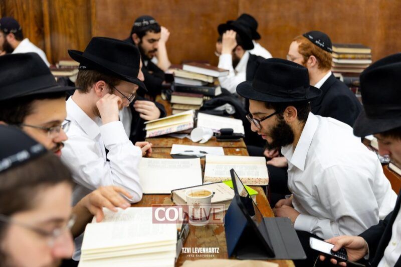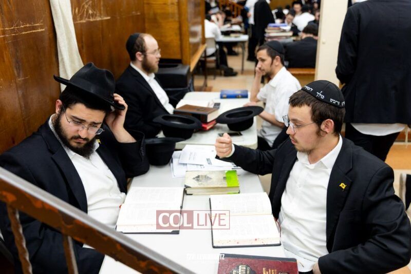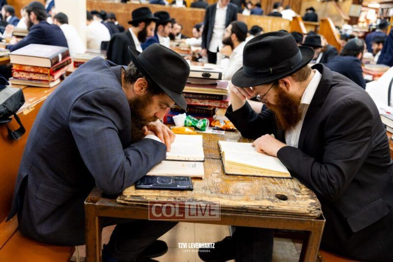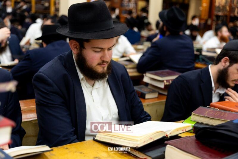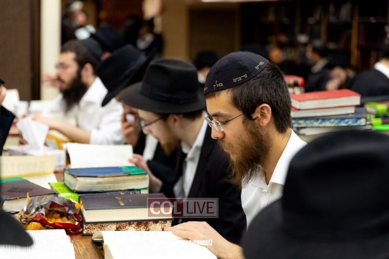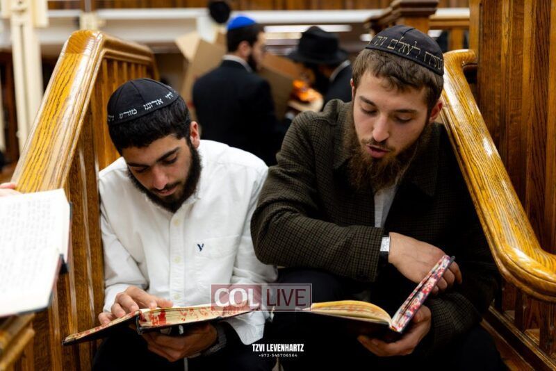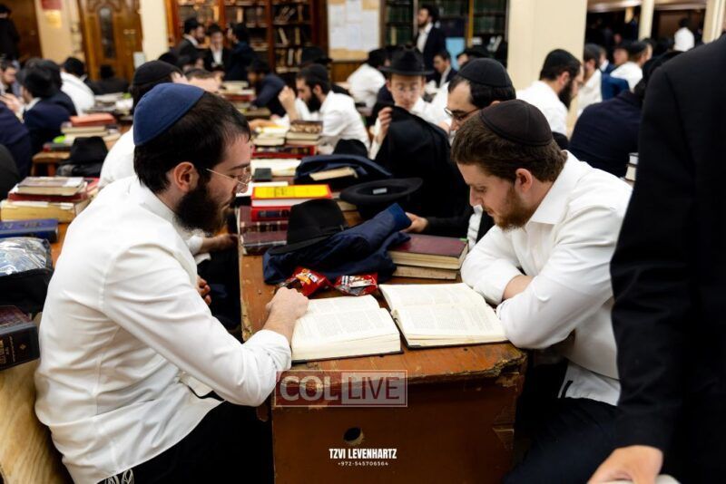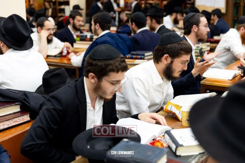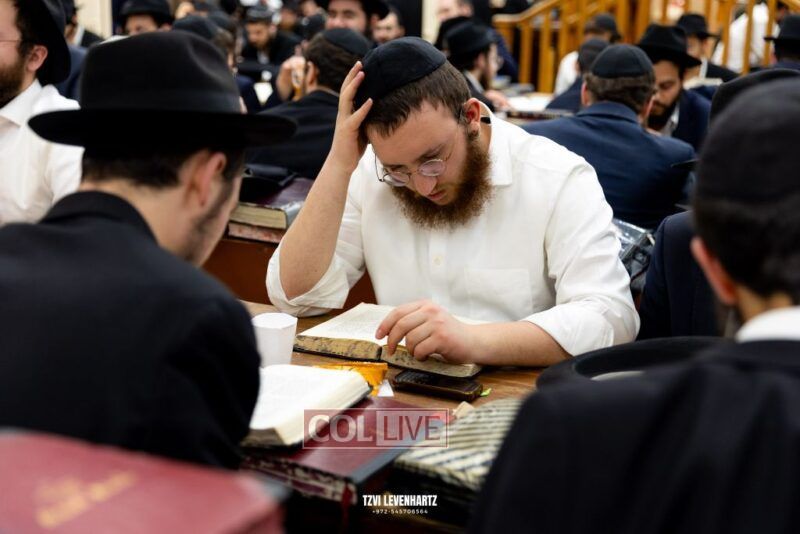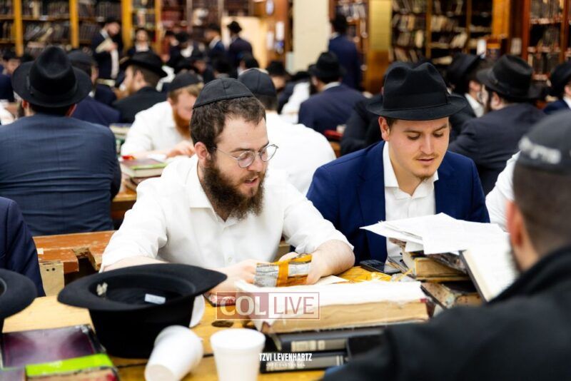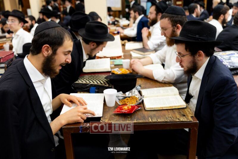 Dozens of Bochurim gathered for a special seder of Likkutei Sichos Sunday night in 770.
