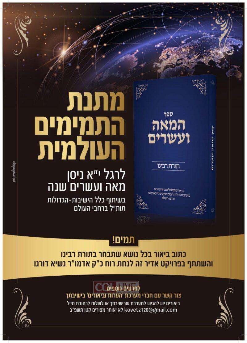 In honor of the Rebbe’s 120th birthday, a group of bochurim in 770 are publishing an unprecedented international sefer, together with Yeshivos Gdolos (zal) from all around the globe, as a gift to the Rebbe in honor of his upcoming 120th birthday on Yud alef Nissan.