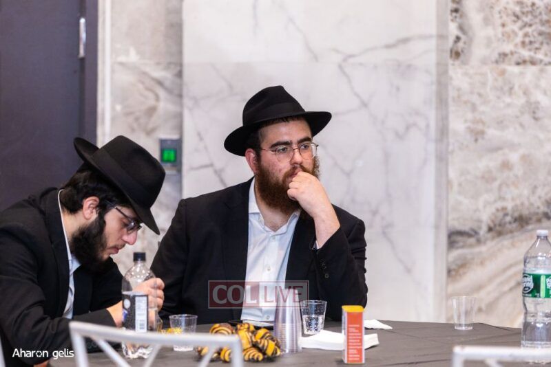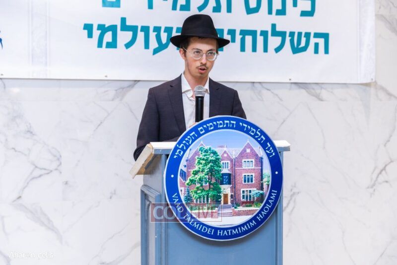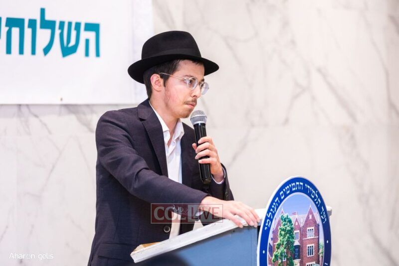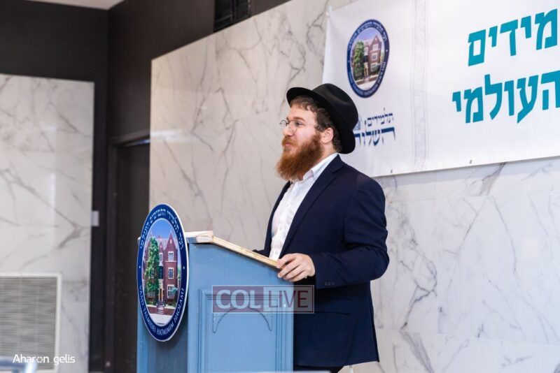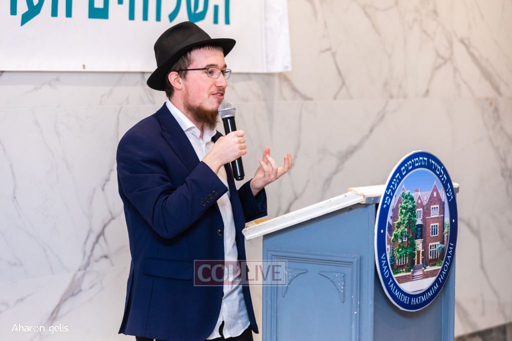 The evening was opened with Torah, Tefillah, and Tzedakah in honor of Eretz Yisroel, with Tehillim led by Shliach Mendel Zaltzman, who is going to Yeshivas Chazon Eliyahu in Tel Aviv. He also shared a Sicha of the Rebbe based on the first Rashi of Beraishis about Eretz Yisroel belonging to Bnei Yisroel.