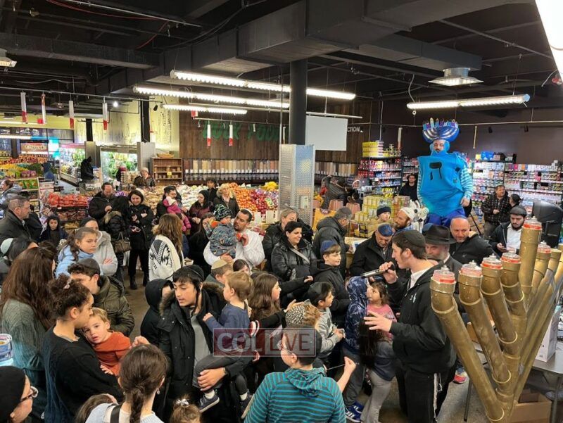 4. Monday Night Foodway – Culinary Delights: In a heartwarming display of community spirit, the local Foodway supermarket became the backdrop for a Chanukah public menorah lighting at Chabad of Georgetown. The vibrant glow of the menorah was accompanied by a dreidel mascot – on stilts! Families gathered to witness the lighting ceremony, transforming the supermarket into a hub of celebration, fostering a sense of unity and joy among patrons.