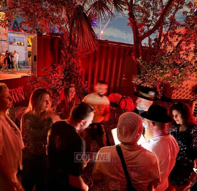 So on a mivtzoim mission, organized by Shaina Holtzberg, to bring the spirit of Purim to a non Jewish music festival at Factory Town in Miami, Mendy Stiefel went with a chavrusa to the location of a large music event on Purim night, with a black hat on and Megillah in hand.