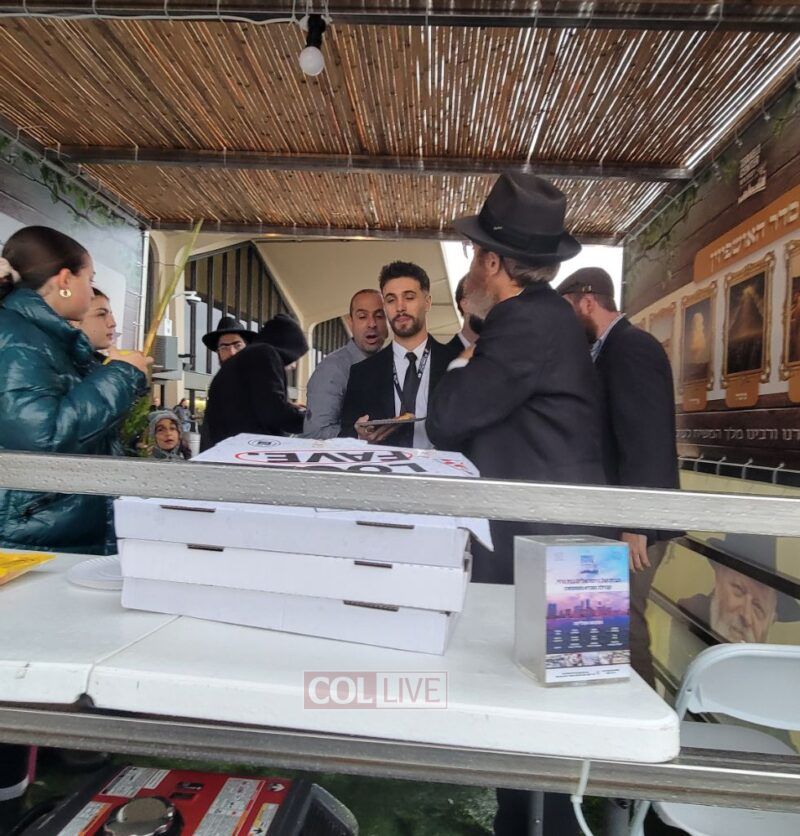 Rabbi Avremy Kanelsky also brought pizza for the ELAL staff, and they all made a blessing in the Succah. As they enjoyed their food, Rabbi Kanelsky taught them about the holiday of Succos.