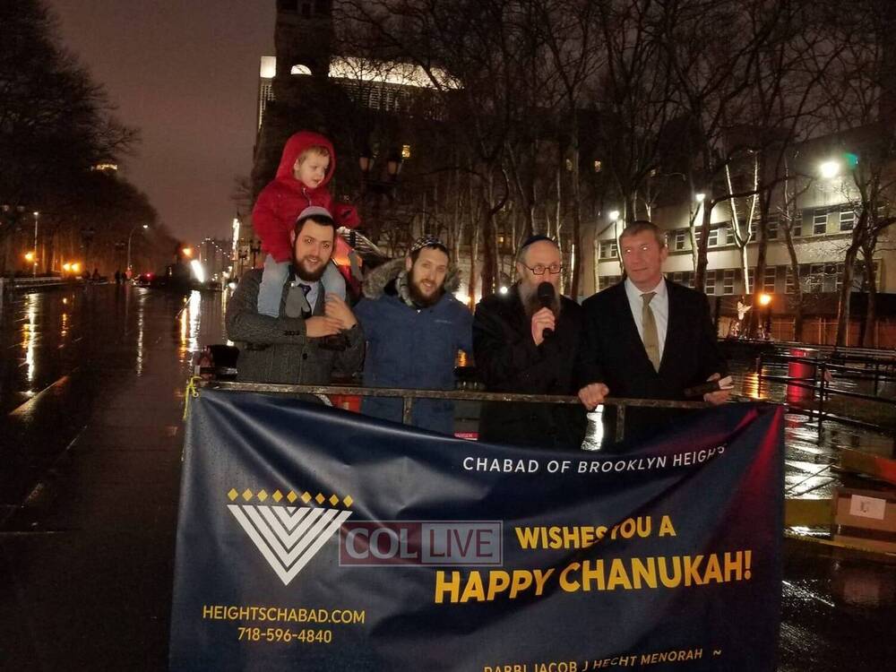 This year the second night of Chanukah was extraordinary. Families who attend the Gan Menachem Kiddie Korner Preschool and Brooklyn Heights Jewish Academy (BHJA) joined the crowd. Eric Gonzales, Brooklyn District Attorney, Lit the Menorah with Rabbi Raskin and right after everyone headed to Borough Hall for a Chanukah celebration funded by Chabad Lubavitch of Brooklyn Heights.