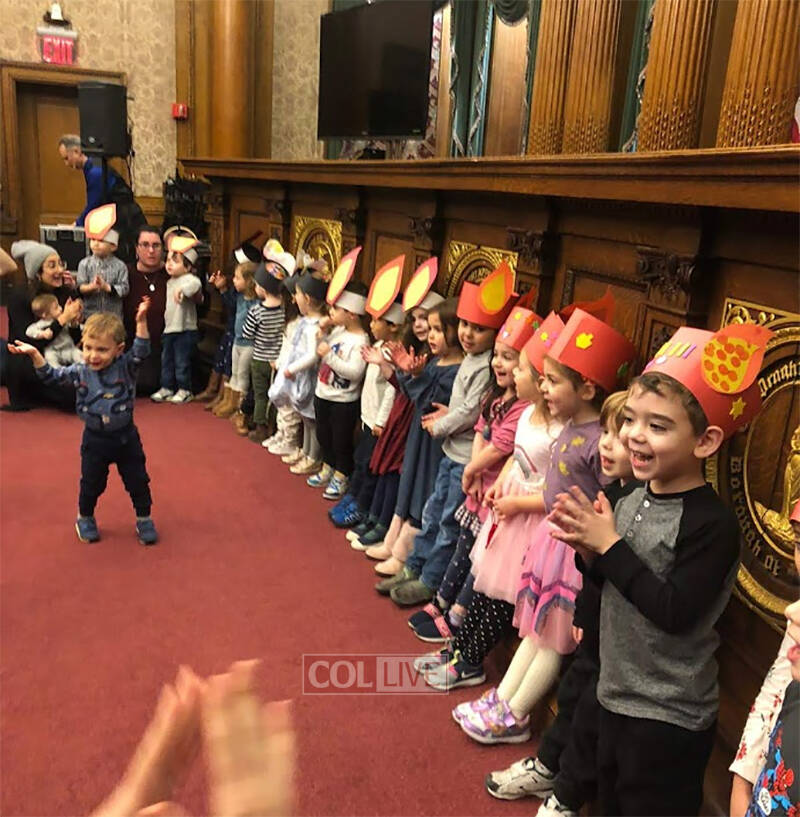 Kiddie Korner children gave a short performance which was then followed by the BHJA choir. BHJA choir was outstanding and received a standing ovation from the crowd. Chanukah felt warmer and more precious than ever in the beautiful courtroom the kids choir sang in.