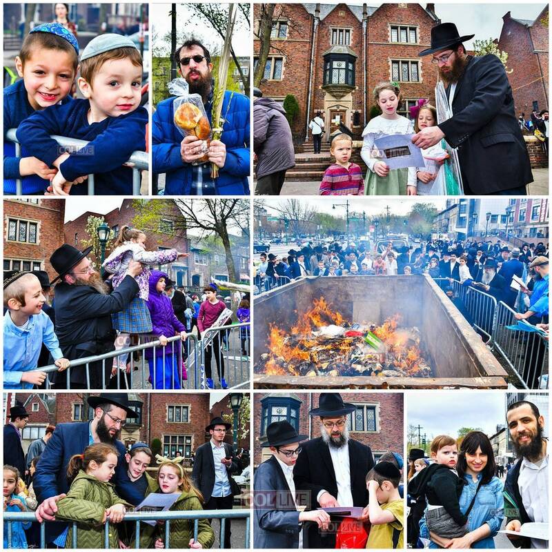 Outside in the front of the Congregation brownstone building, the flames of Chometz burning were seen for miles away and brought many community members over to join the scene.