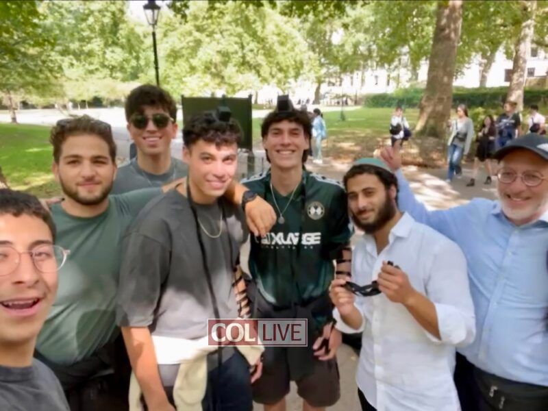“It was a moving moment,” an onlooker told COLlive.com. “the Canadian Chabad boys, the Israeli litvish travelers and the Australians in the middle of central London bonding over the special Mitzvah of tefillin.”