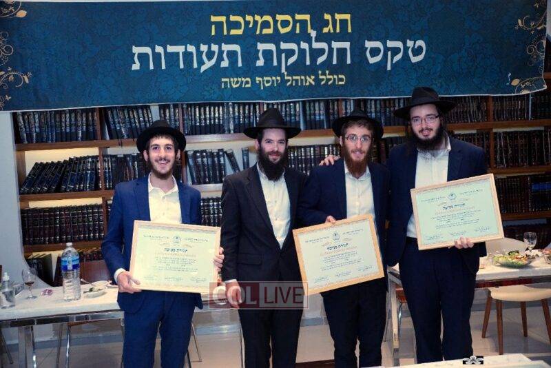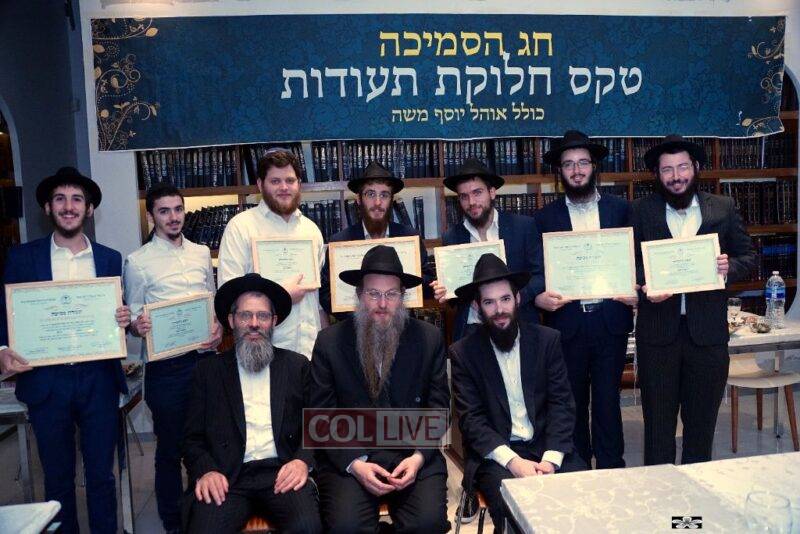 The Smicha graduates are Hatomim Motty Moskovitz, Hatomim Tuvia Shmukler and Hatomim Alexander Posternak. The Shabbos Program graduates are: Hatomim Mendy Chocron, Aharon Chab, Eitan Benoliel, Arie Leib Farkash, Dan Kordon, Reb Zasha Silberstein and Reb Chaim Dobry.