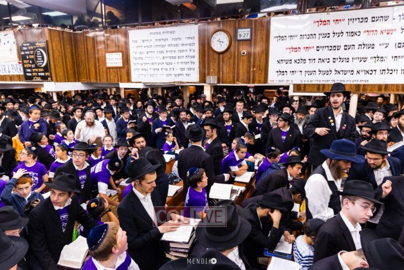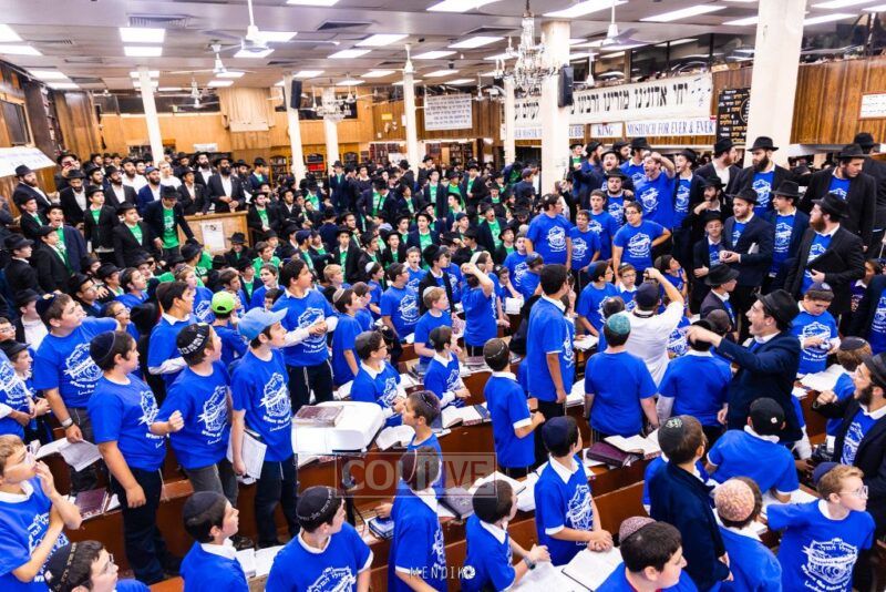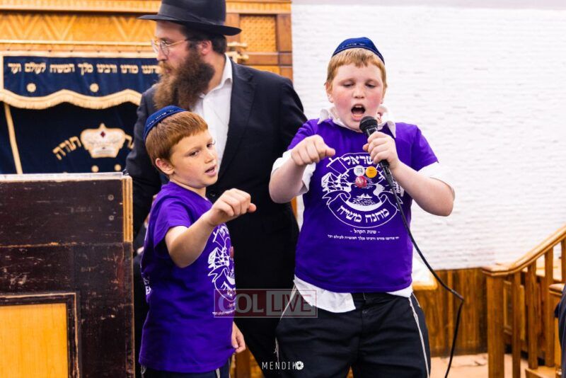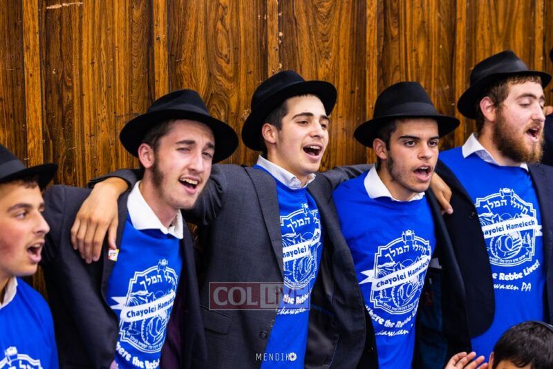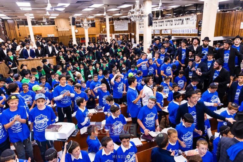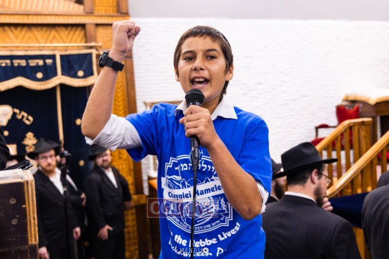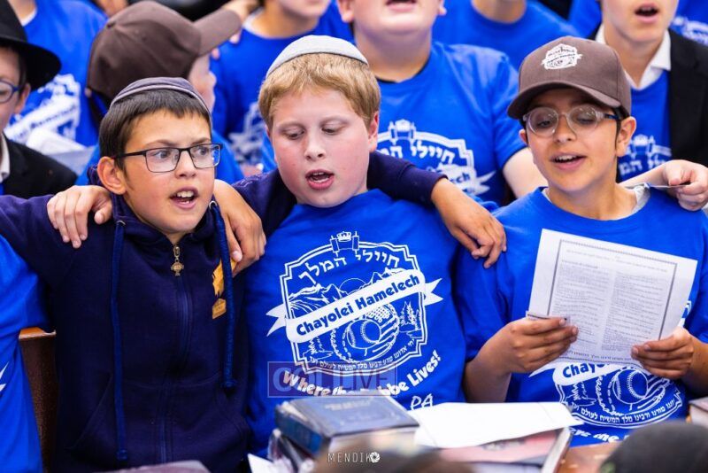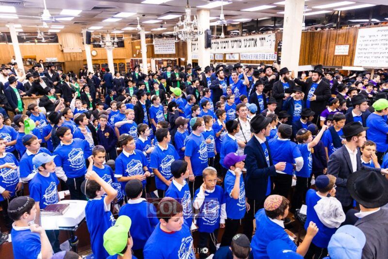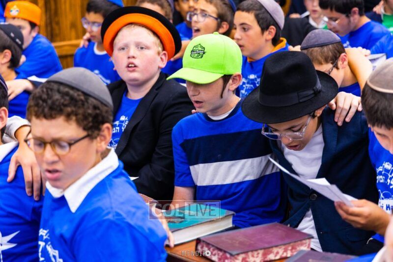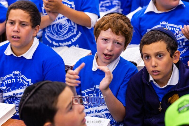 Campers of Camp Chayolei Hamelech traveled from Lackawaxen, PA to join Mincha davening and a spirited rally in 770 marking the day of Chof Av, the Rebbe's father's Yartzeit. Photos