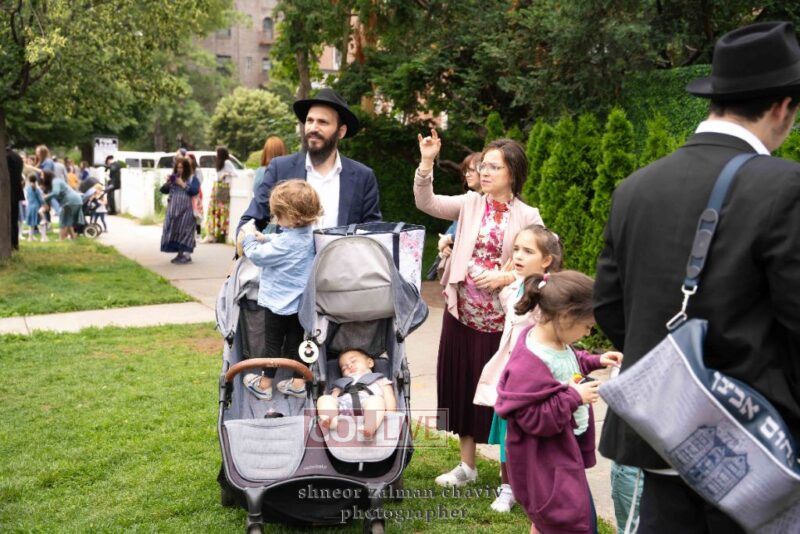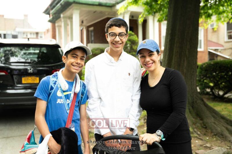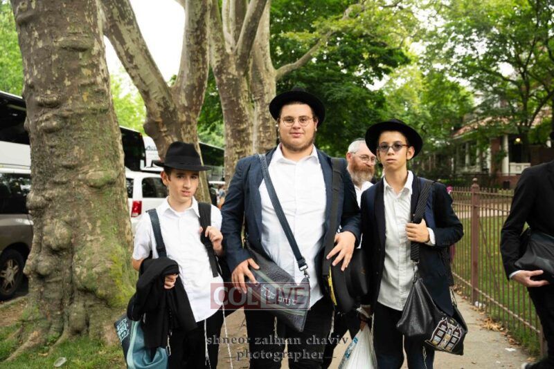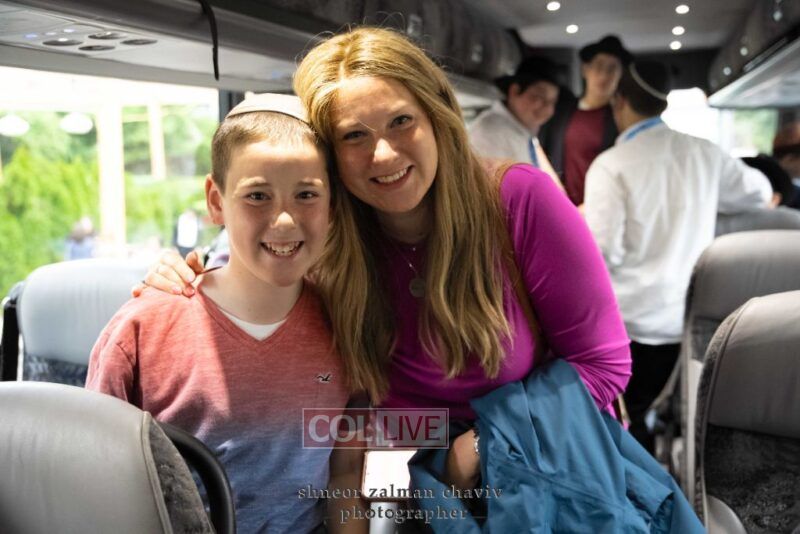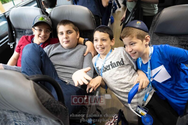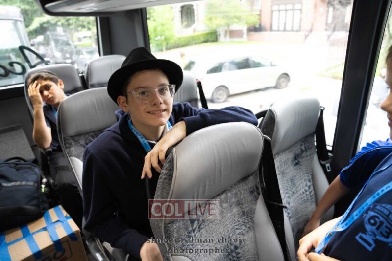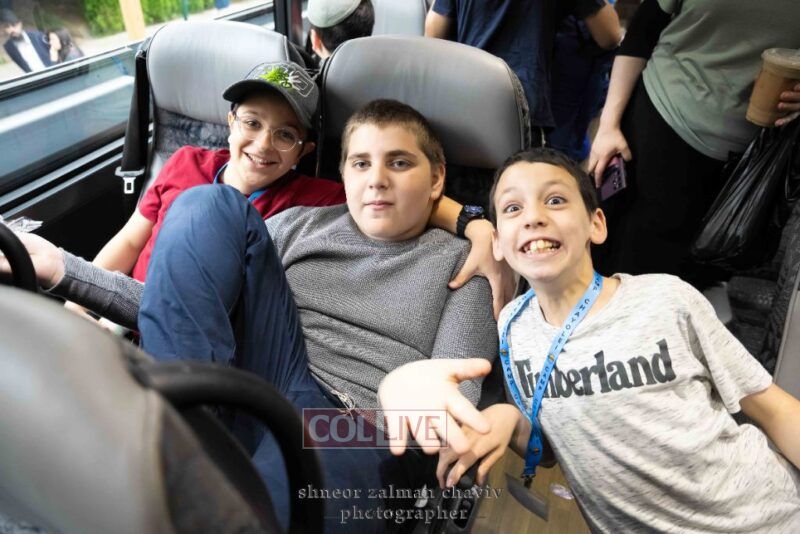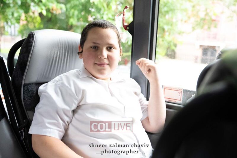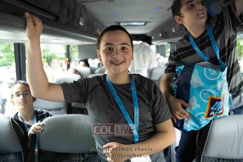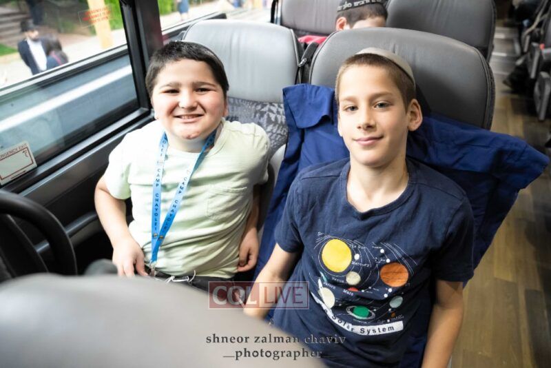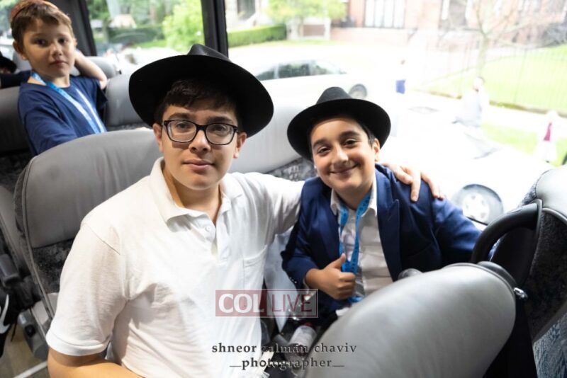 Here we come: Campers boarded buses in Crown Heights on Tuesday to spend the summer season at Camp Chayolei Hamelech in Lackawaxen, Pennsylvania. Their parents and siblings waved them goodbye. Photos