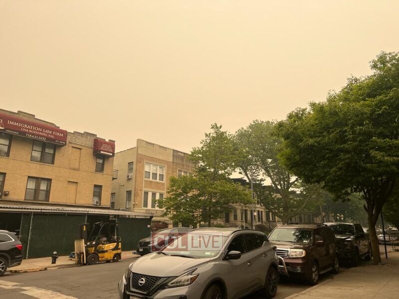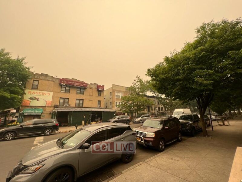The air quality rating for brooklyn right now on the iPhone app is 395 which is rated as ‘hazardous’. Best stay inside with closed windows, no ac, and turn air purifiers on if possible.