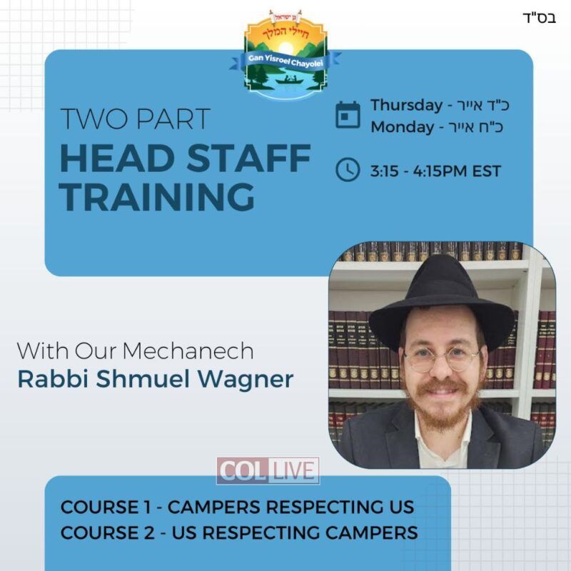 That’s why Camp Gan Yisroel Chayolei is kicking off the summer with a focused, two-part head staff training and we’re opening it up to head staff from all boys camps who want to lead with intention.