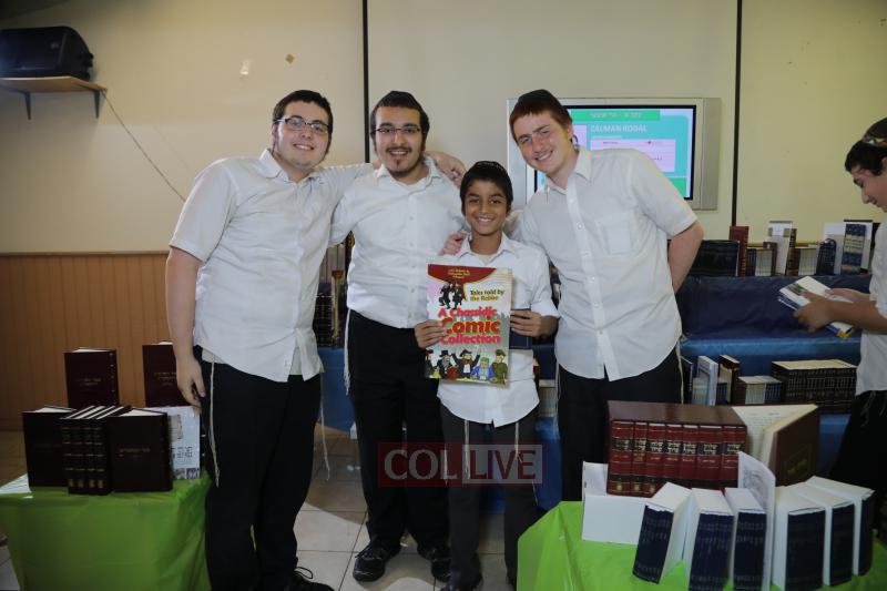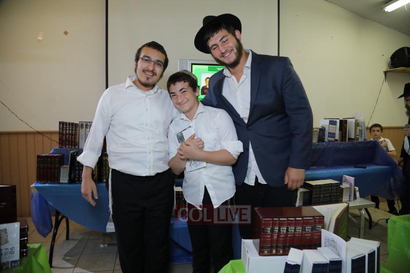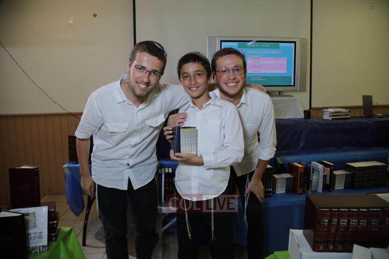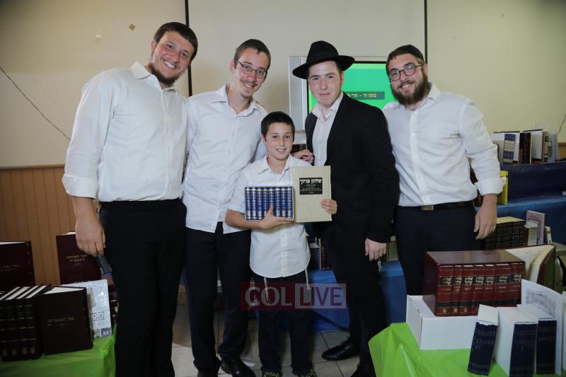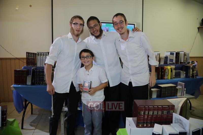 Each camper was then called up to receive his seforim. Camp staff and administration joined in to pay tribute to the children’s efforts. A simultaneous multimedia presentation was played as each camper was called up, displaying the campers’ picture, points, major learning achievements and seforim they were receiving.