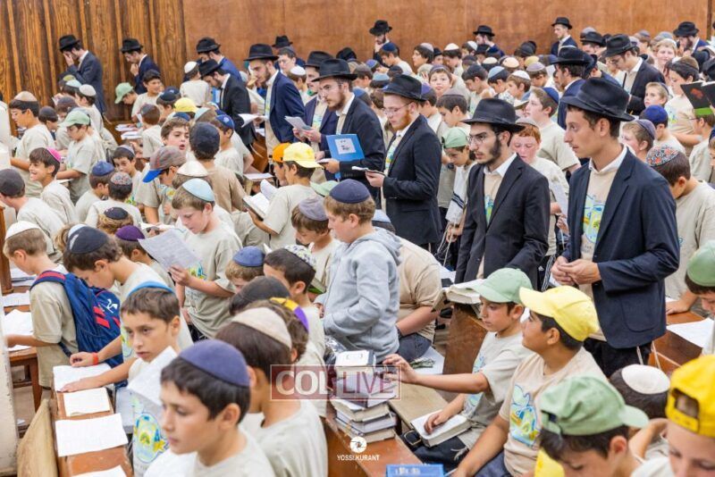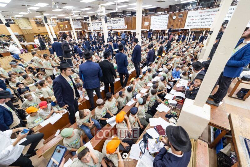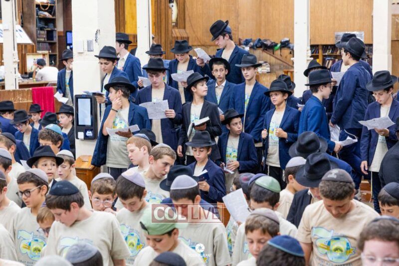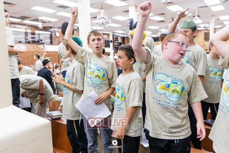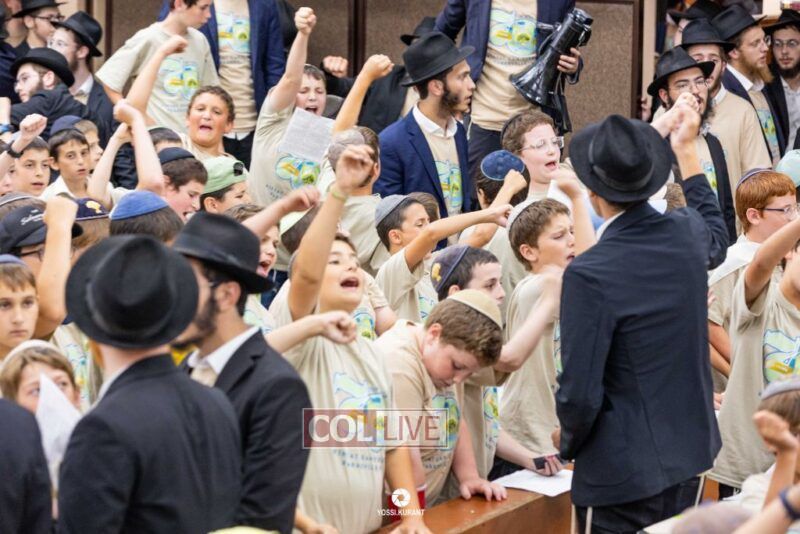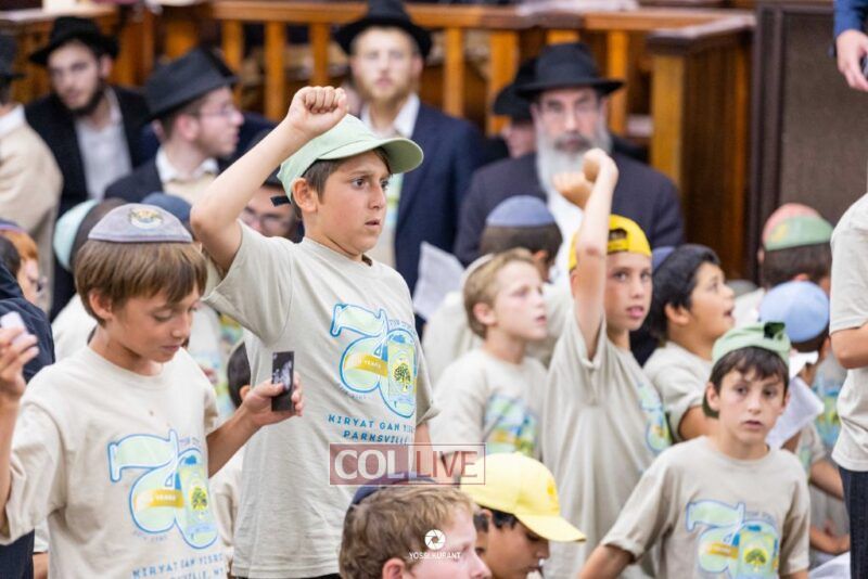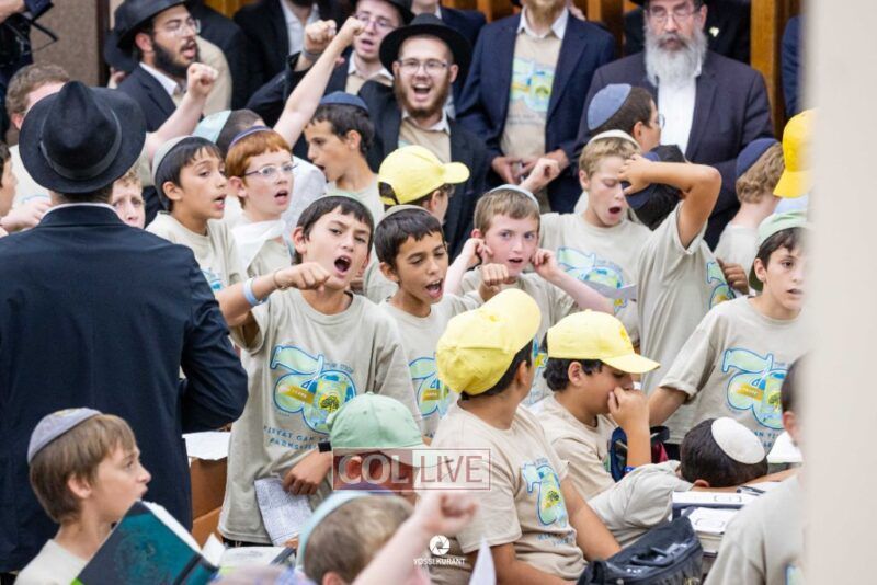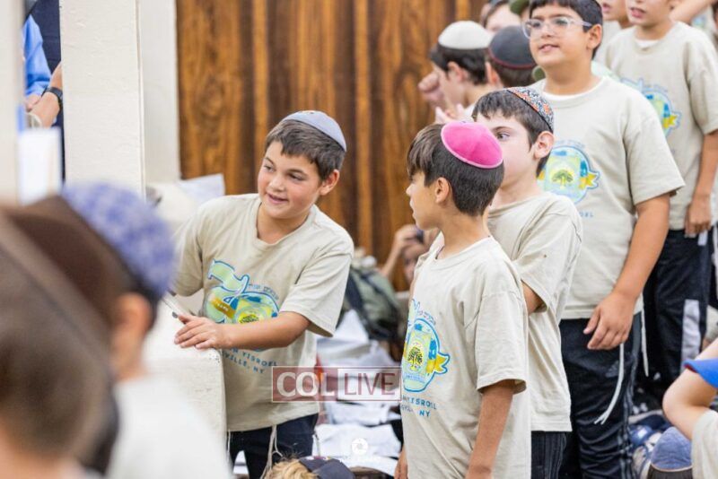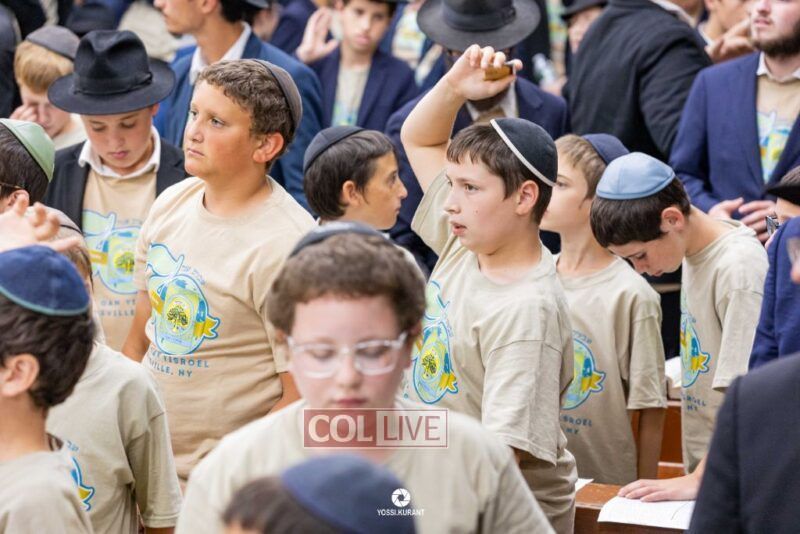 Campers of Camp Gan Israel of Parksville traveled from upstate New York to visit the Rebbe's Ohel in Queens and then joined Mincha davening and a spirited rally in 770 in honor of Chof Av, the Rebbe's father's Yartzeit. Photos, Video