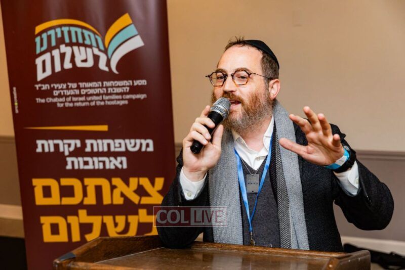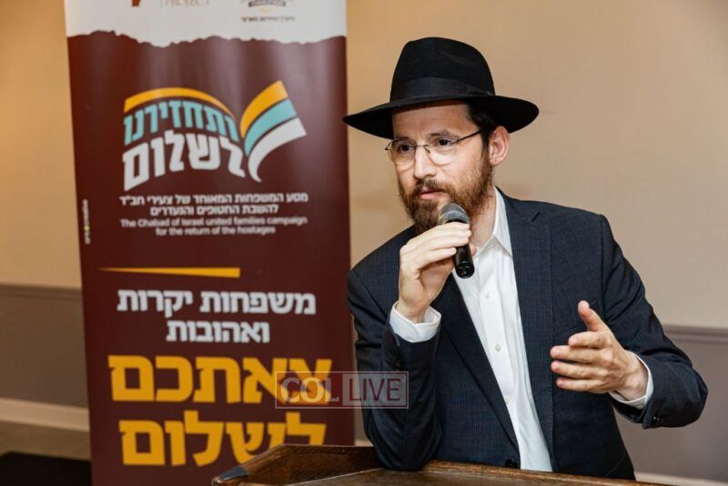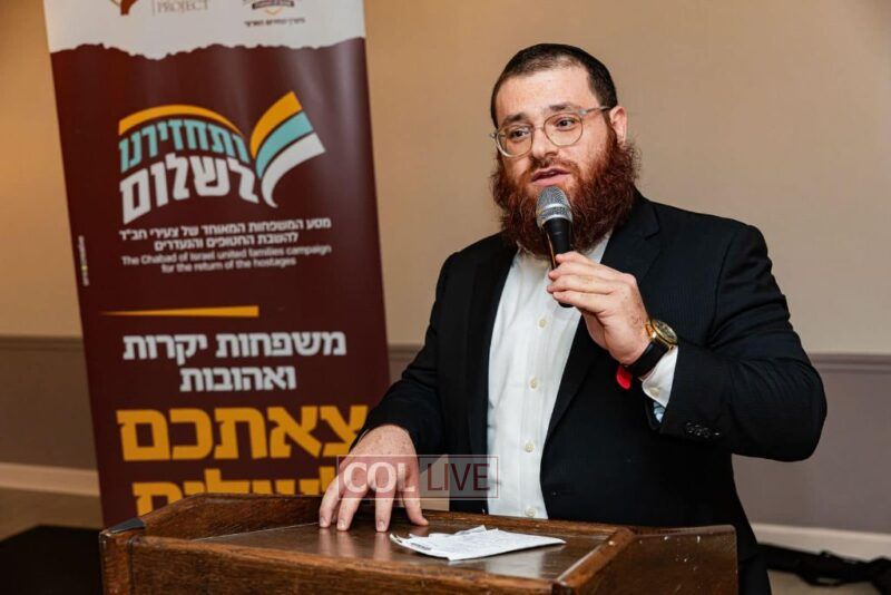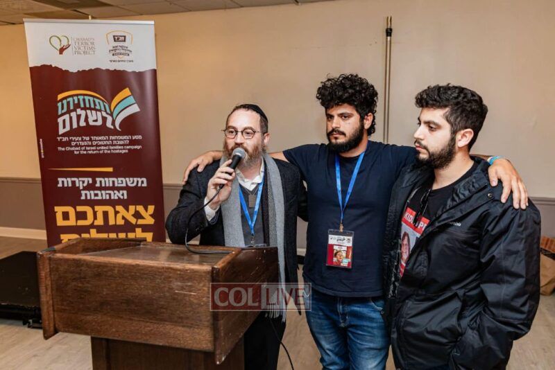 The evening concluded the special trip that relatives of the hostages took to the United States, organized by Tzeirei Agudas Chabad of Israel chaired by Rabbi Yosef Yitzchok Aharonov.