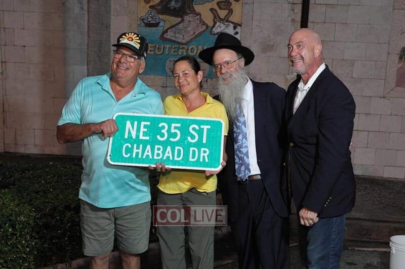 In a city where only a handful of Jews lived not that long ago, today there is a vibrant Jewish community. The City of Fort Lauderdale recognized and honored the significant contributions of Chabad Lubavitch of Fort Lauderdale, led by Rabbi Moishe Meir and Penina Lipszyc, by dedicating a new name to the current NE 35th street, adding the name “Chabad Drive.”
