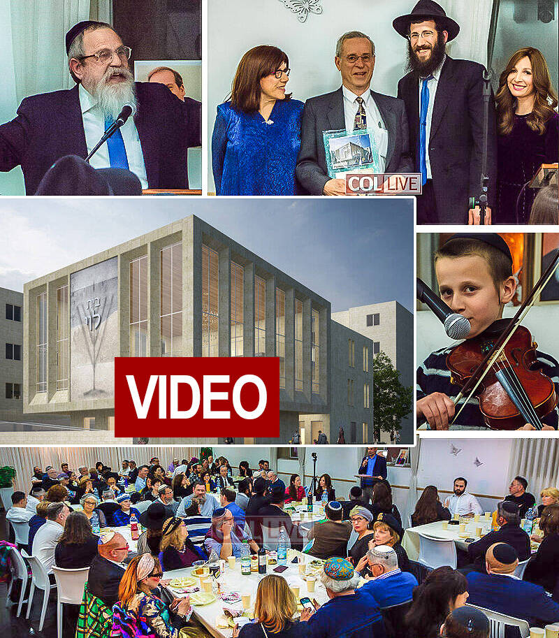 The focus of this year’s dinner was the building campaign, which is now underway. Talented architect, David Abergel, has designed a magnificent synagogue and center to be built on the spacious plot of land on Derech Beit Lechem that Chabad of Baka gratefully received from the Jerusalem City Hall. Three generous couples in the community were honored for being pioneer builders and helping to jump-start the campaign: Andrew and Diana Reinhard, Dr. Charlotte and Gil Goller, and Tehila and Michael Rose. The event also paid tribute to Rabbi Yechiel Eckstein z’l and Walter Drimer z’l, who were beloved community activists.