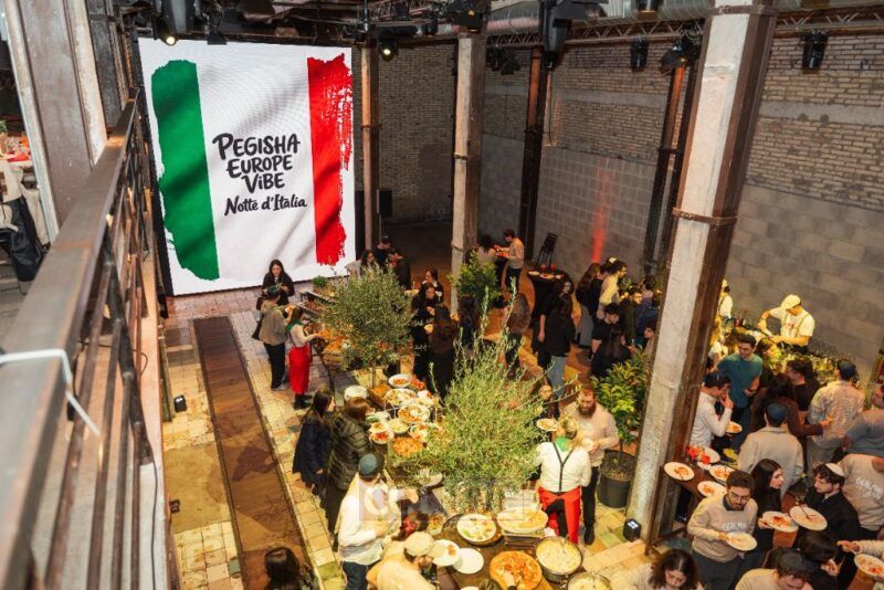 From there, participants made their way to the Pegisha Vibe: Notte d’Italia, an unforgettable evening fusing Jewish entertainment with local culture, including an Italian street theme, pizza, pasta, spritz, live music, and artisan vendors with Jewish crafts, capping off the night with an intimate kumzitz led by Joey Newcomb.
