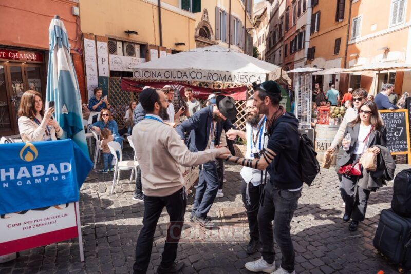As Shabbos approached, the women gathered for candle lighting while the men explored the power and meaning of Shabbos. The evening continued with a lively Kabbalas Shabbos. Shabbos dinner featured words from Mrs. Rivkah Leah Hazan, head Shlucha of Italy, delicious Kosher Italian-style cuisine, songs, and farbrengens that lasted throughout the night.
