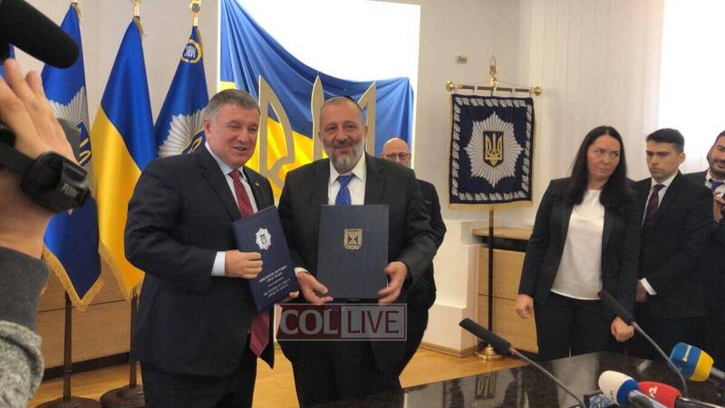 The agreement, signed by Interior Minister Aryeh Deri and Ukrainian Interior Minister Arsene Abkov, took place at a ceremony at the Interior Ministry in Kiev.