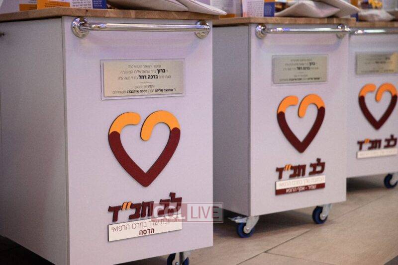 The project, which has been operating as a pilot in a number of hospitals, consists of portable Chabad booths that offer visitors to the hospitals food for the heart and soul—drinks and light refreshments, as well as tefillin, Shabbos candles, and reading material. The booths donated by the Aizenberg family will upgrade the project by providing professional, attractive, and purpose-built booths.