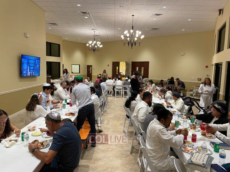 The Chabad house lost all power, but we were ready to host hundreds of newly homeless Jews for the Shabbos seuda. Rabbi Josh Brody of Boca Raton, and fellow shluchim, sent plentiful challos, fish, meat, and chicken, and baruch Hashem, despite the disaster surrounding us, we were able to celebrate a beautiful and uplifting Shabbos together.