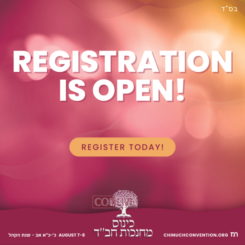 The Menachem Education’s Foundation’s 8th Annual International Kinus Mechanchos Chabad is scheduled to take place on 20-21 Av / August 7-8, 2023 at the Hilton Stamford Hotel and Executive Meeting Center in Stamford, CT. The two day convention will gather 700 Mechanchos from around the world, to network, rejuvenate and attend professional development workshops. Mechanchos can find out more and register at chinuchconvention.org.