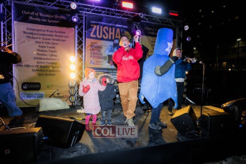 The event took place in front of the 30-foot-tall “Rabbi Jacob J Hecht Official Brooklyn Menorah” in front of Brooklyn’s borough hall and the Brooklyn Supreme Court. Even though the temperature was freezing, throngs still came out to this magnificent concert. The event was a vibrant celebration of the holiday, featuring a powerful message and warm greetings from Brooklyn District Attorney Eric Gonzales, who spoke about his efforts to combat anti-Semitism and underscored the concert’s communal importance. The program showcased outstanding Jewish music artists, including the beloved, soulful sounds of Zusha and the innovative, high-energy performance of Kosha Dillz. Their combined artistry created an unforgettable evening of music and light, truly embodying the spirit of Chanukah for all who attended. The concert was dedicated to the communities, survivors, and friends of the Bondi Beach massacre in Sydney, Australia. Local supporters and a Grant from the UJA subsidized the concert.