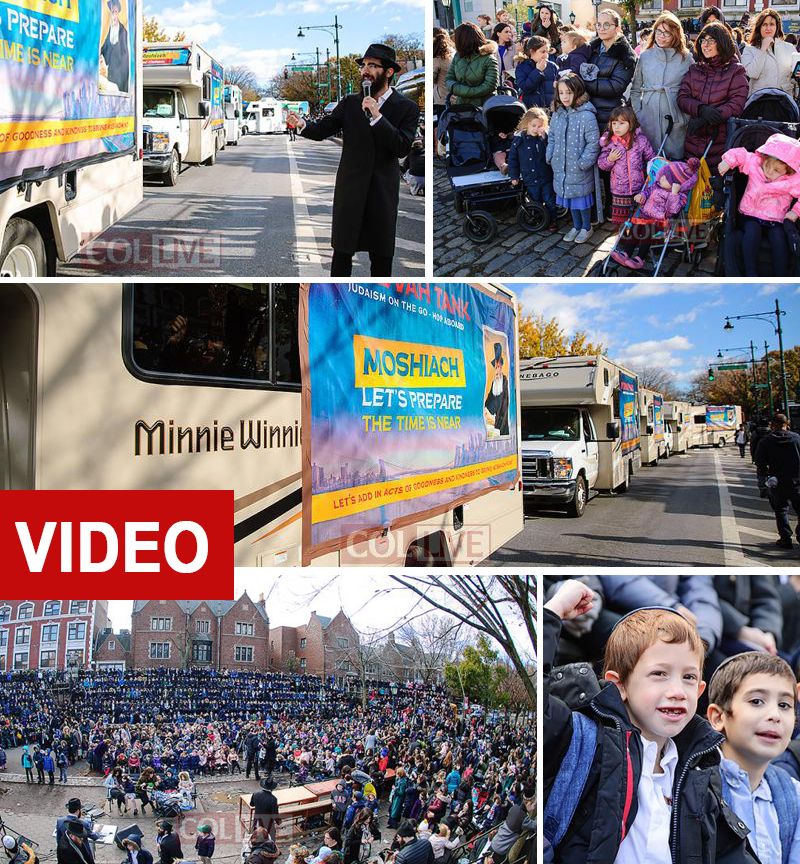 The slew of people praying and passing through Lubavitch World Headquarters at 770 Eastern Parkway in Brooklyn, NY, stopped for a moment on Sunday to witness a unique scene.