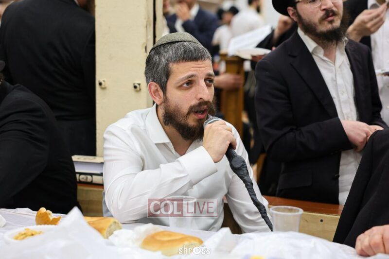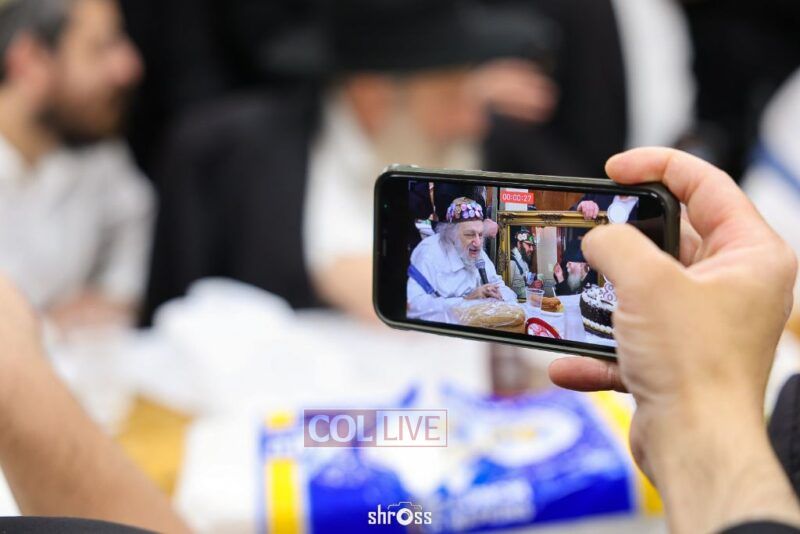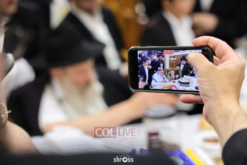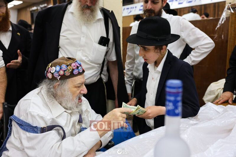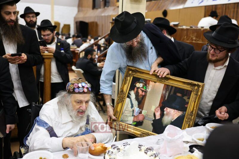 During the Farbrengen, Charlie told of his encounters with the Rebbe, and gave brachos to many in attendance. He was presented with a special gift – a framed photo of himself receiving a dollar from the Rebbe.